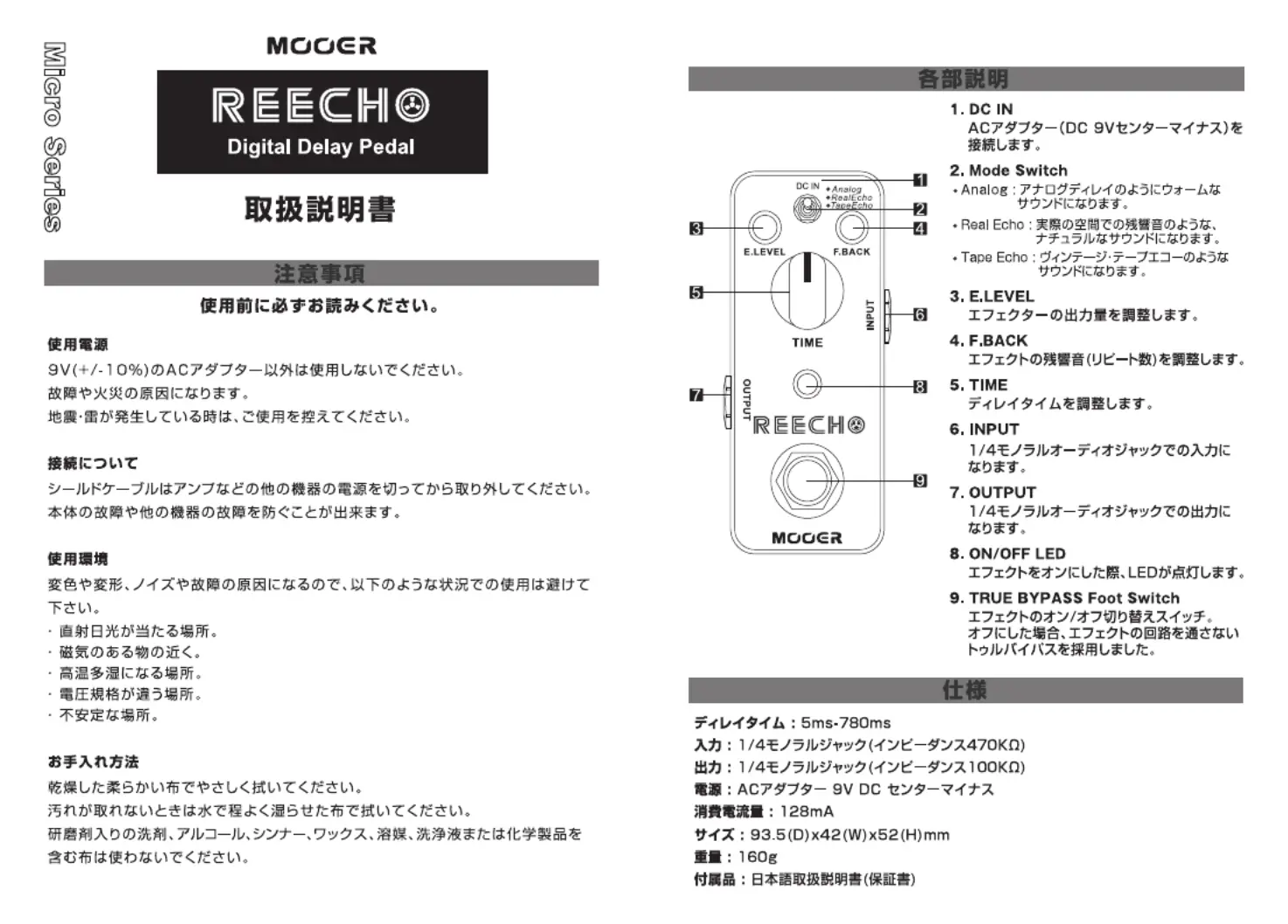 Mooer Reecho Bruksanvisning