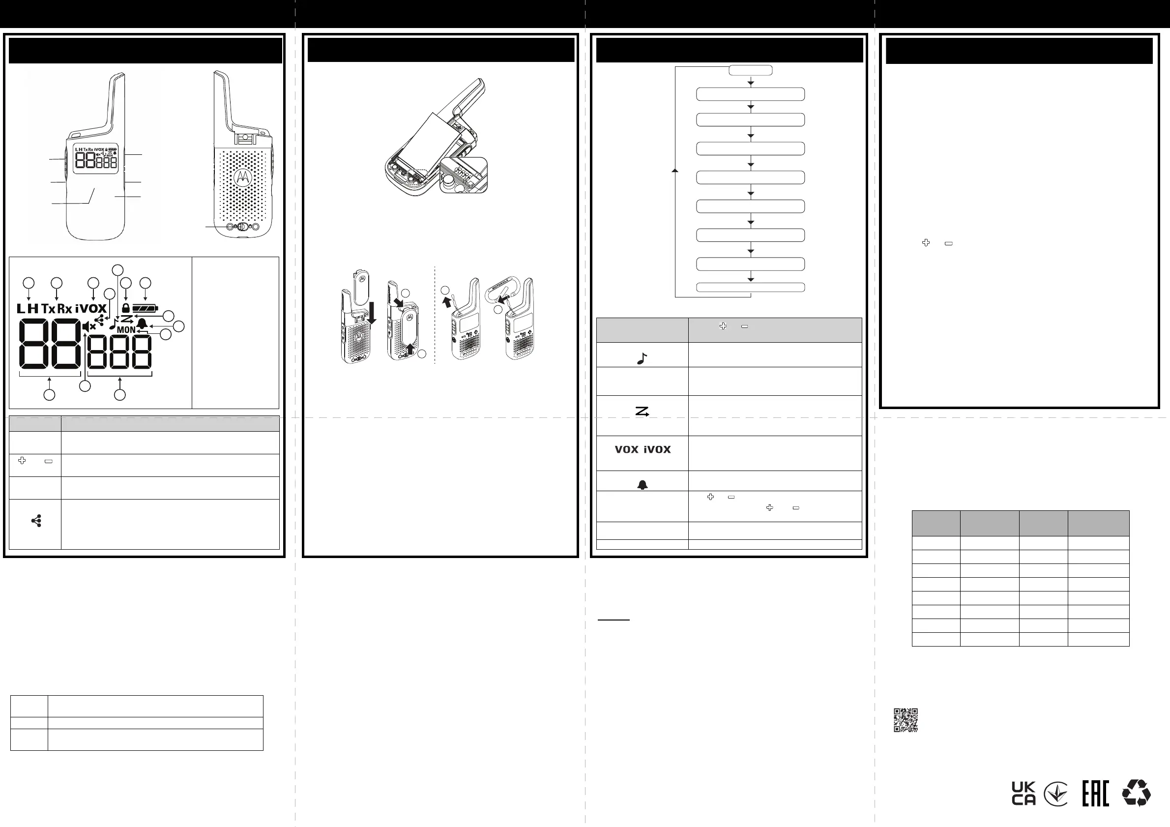 • Set your radios with the same channel and code setting to enable communication
