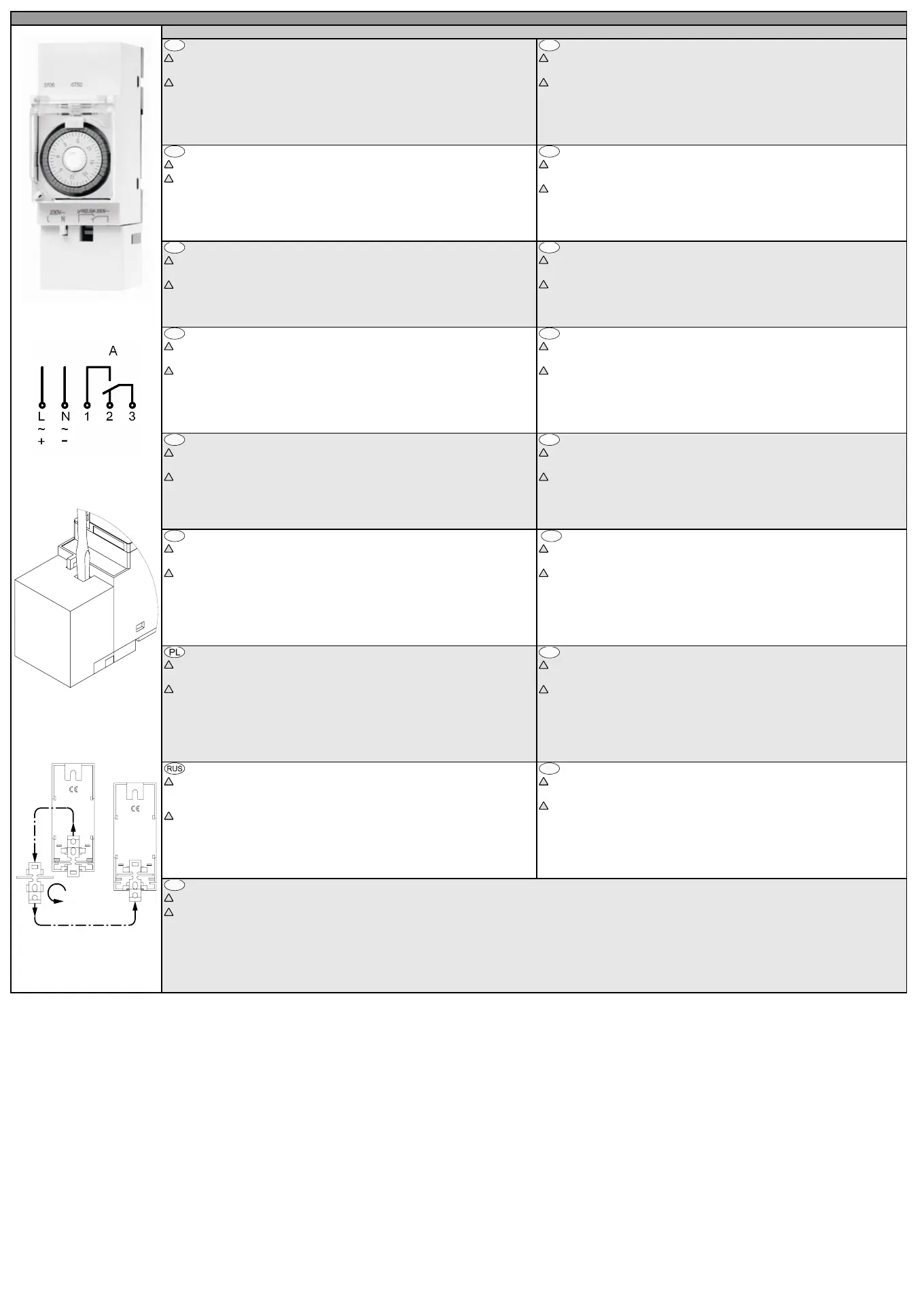 Connections: Connect the supply voltage/frequency (as stated on the Time-Switch label) to terminals L &