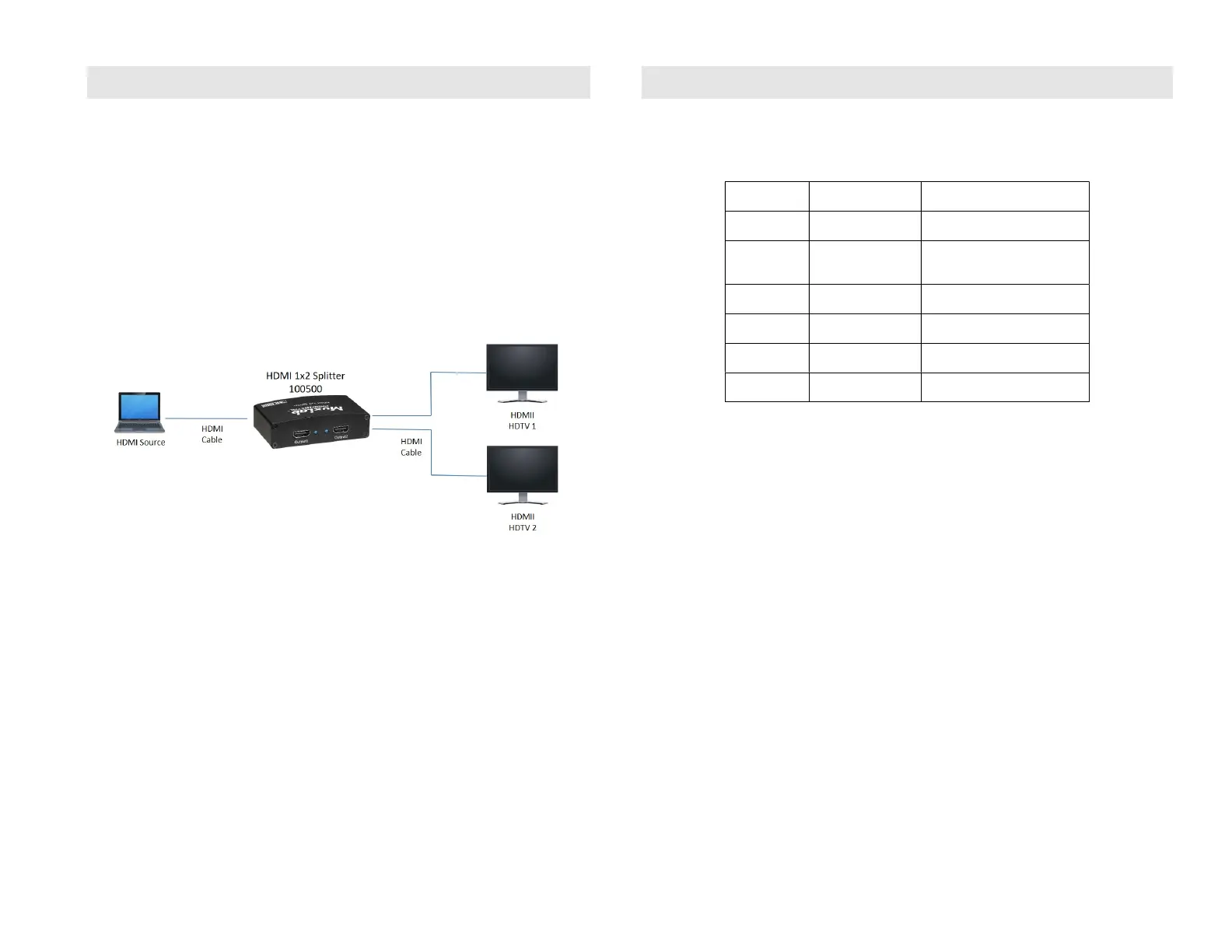 The HDMI 1x2 Splitter (100500) allows one (1) HDMI source to be distributed to