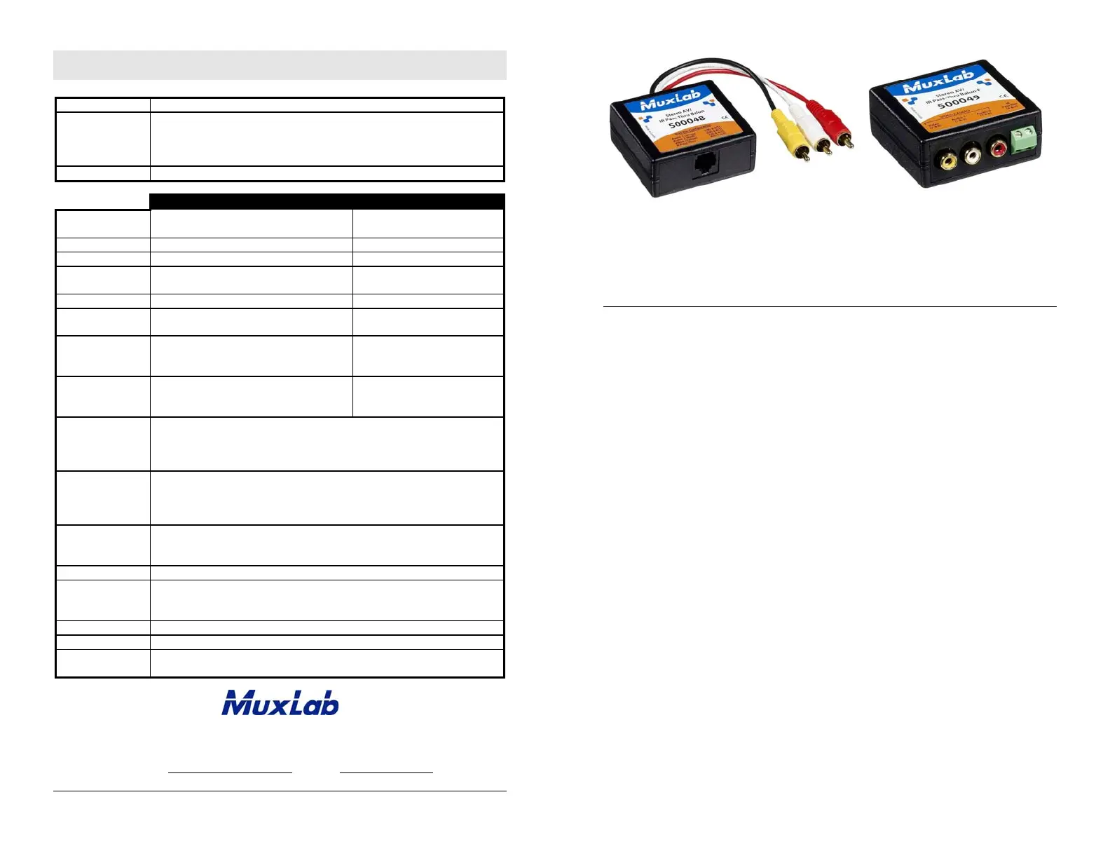MuxLab AV/IR Pass-Thru Balun Bruksanvisning