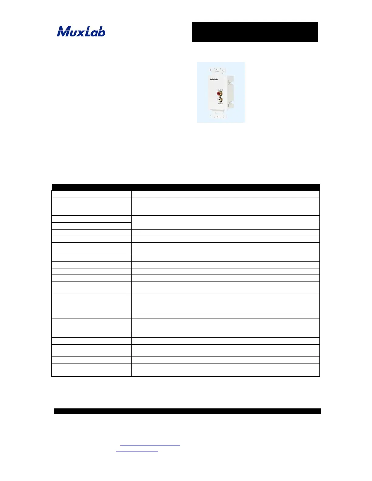 © MuxLab Inc. 2011 Stereo Hi-Fi Wall Balun
