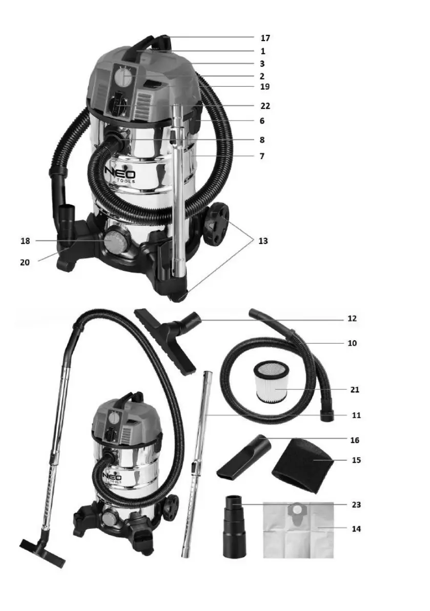 Läs gratis den bruksanvisning för NEO Tools 04-739 (46 sidor) i kategorin dammsugare. Guiden har ansetts hjälpsam av 3 personer och har ett genomsnittsbetyg på 5.0 stjärnor baserat på 2 recensioner. Har du en fråga om NEO Tools 04-739 eller vill du ställa frågor till andra användare av produkten? Ställ en fråga