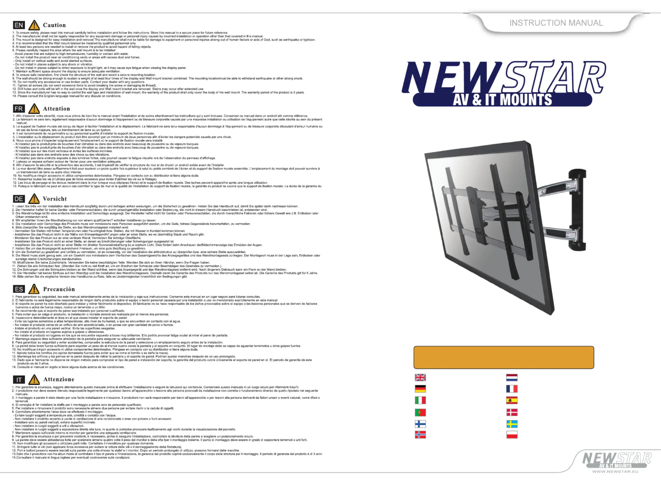 Wandstöd NeoMounts Manualer