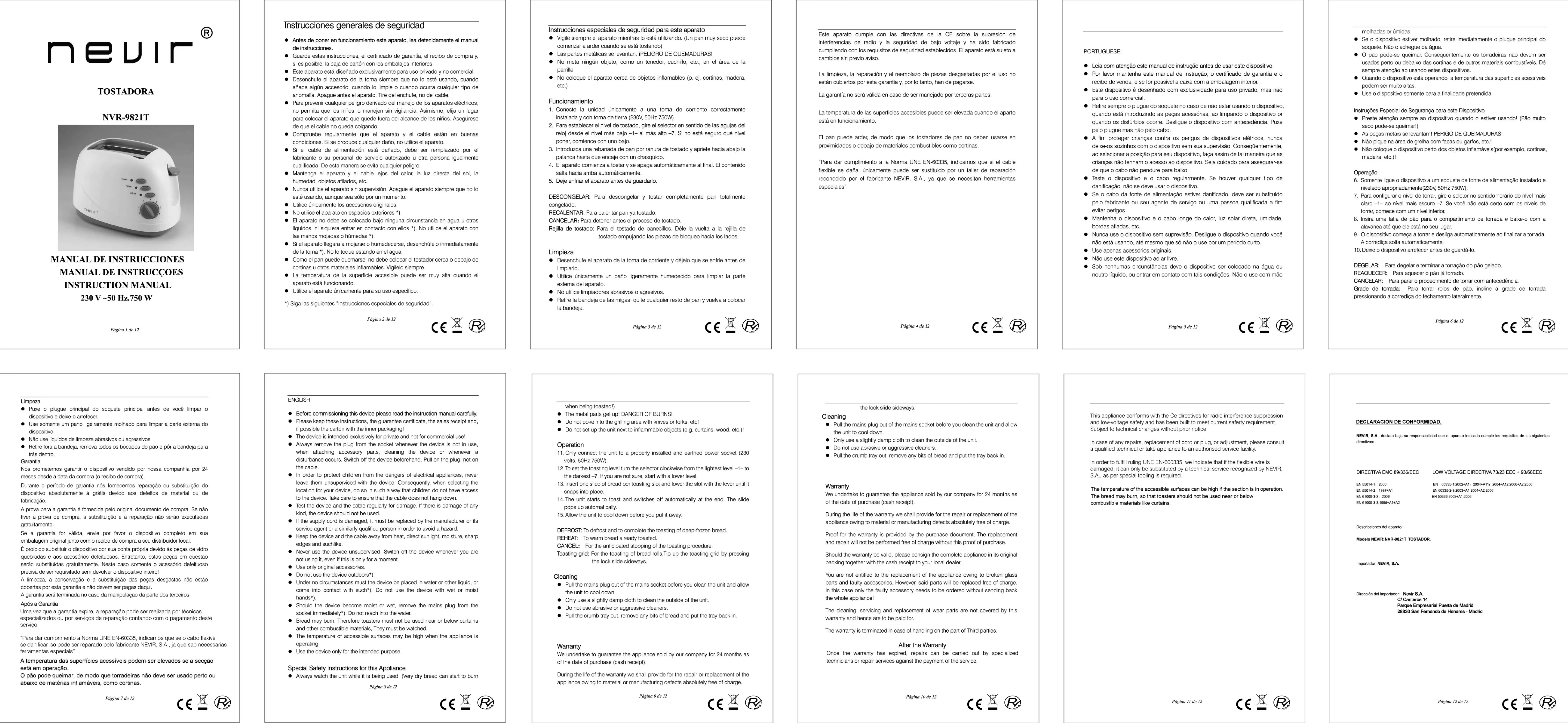 Brödrost Nevir Manualer