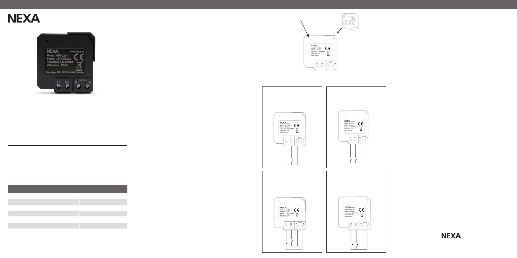 Nexa WBT-2201 Bruksanvisning