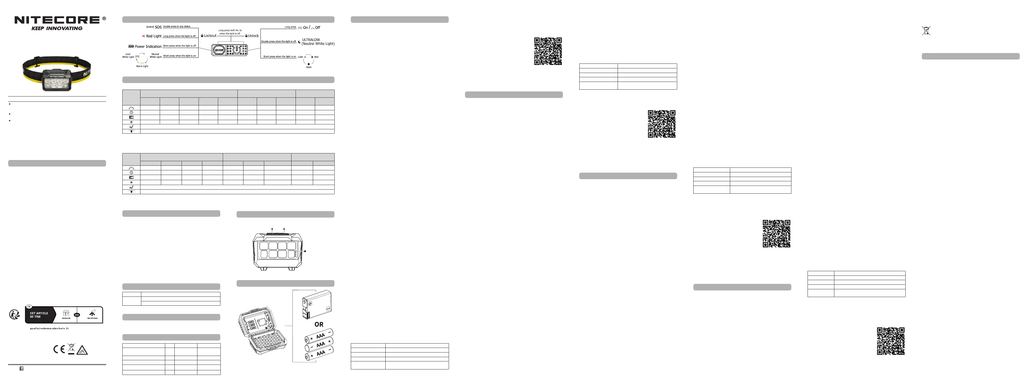 Note: Thestateddataismeasuredbyusing1xNITECOREHLB1500Li-ionbatterypack(1,500mAh),inaccordancewiththeinternationalashlighttestingstandards