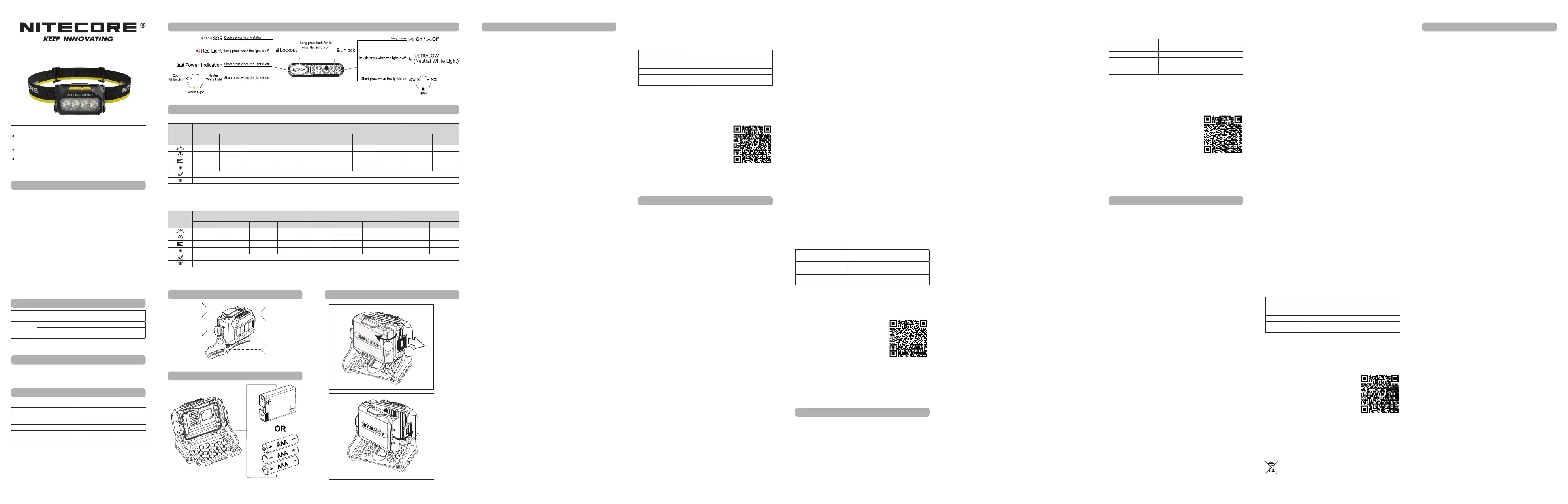 Note: Thestateddataismeasuredbyusing1xNITECOREHLB1500Li-ionbatterypack(1,500mAh),inaccordancewiththeinternationalashlighttestingstandards