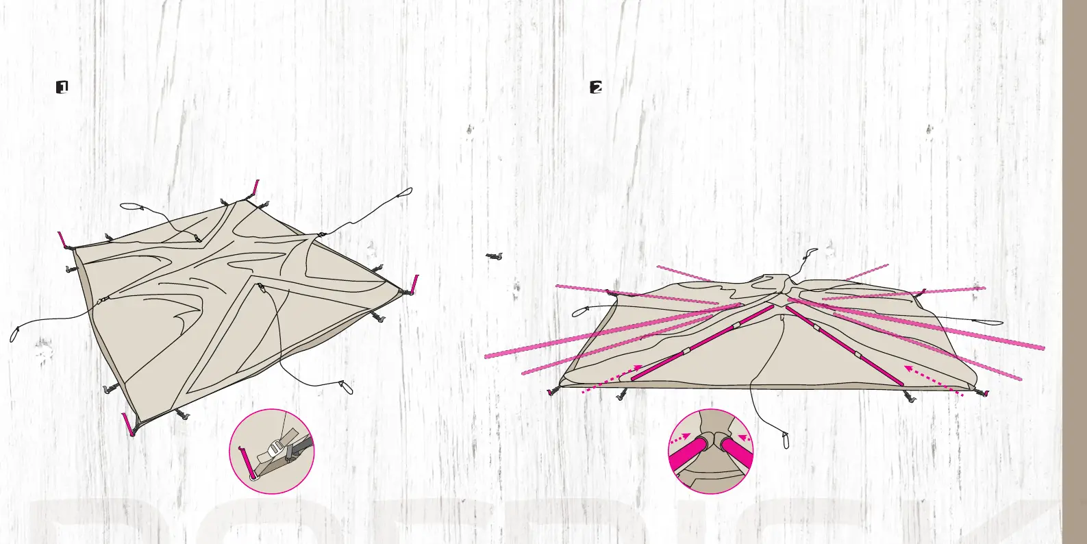 peg these. Make sure that the adjustable webbing is extended to allmost
