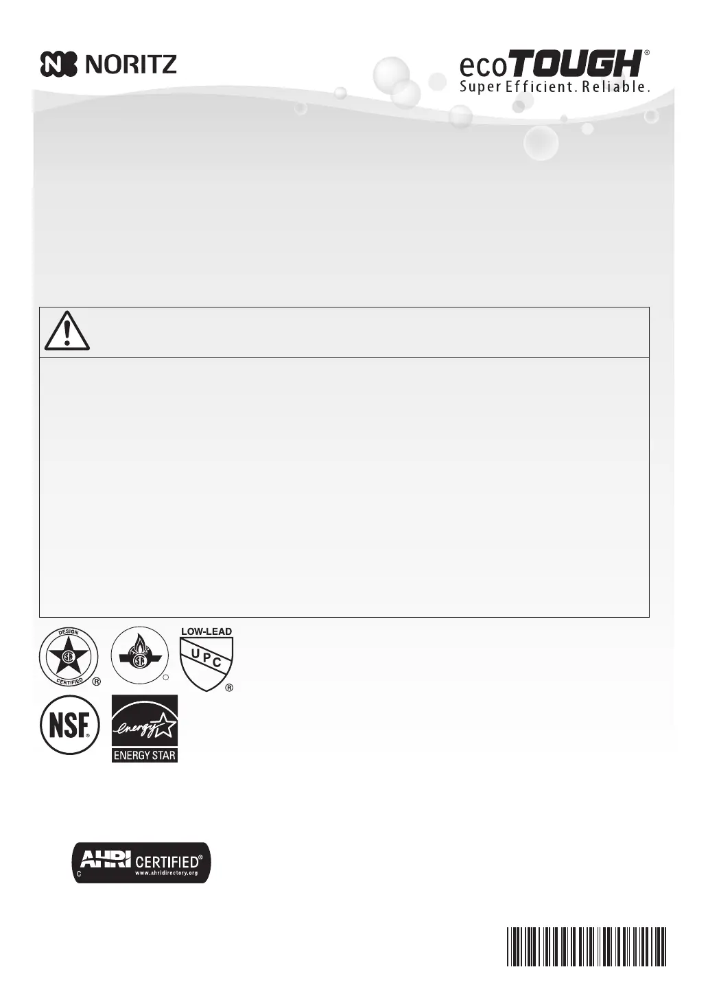Thank you for purchasing this Noritz Tankless Gas Water Heater.