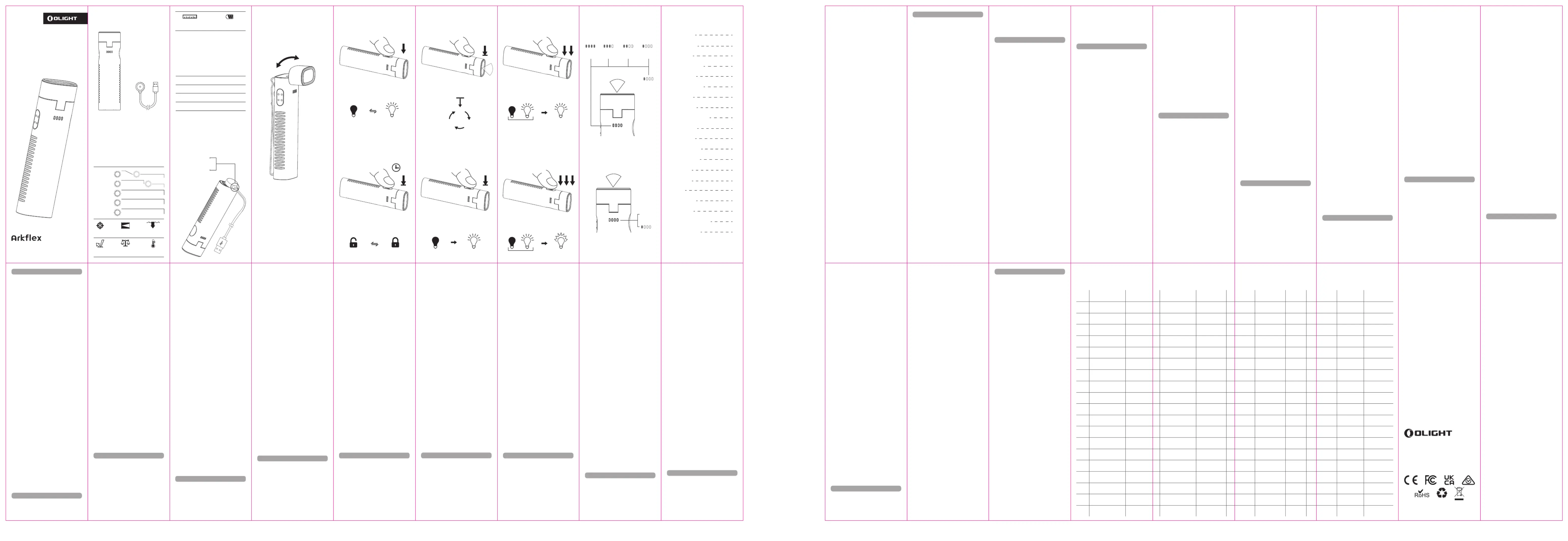 Läs gratis den bruksanvisning för Olight Arkflex (2 sidor) i kategorin Ficklampa. Guiden har ansetts hjälpsam av 37 personer och har ett genomsnittsbetyg på 4.8 stjärnor baserat på 19 recensioner. Har du en fråga om Olight Arkflex eller vill du ställa frågor till andra användare av produkten? Ställ en fråga