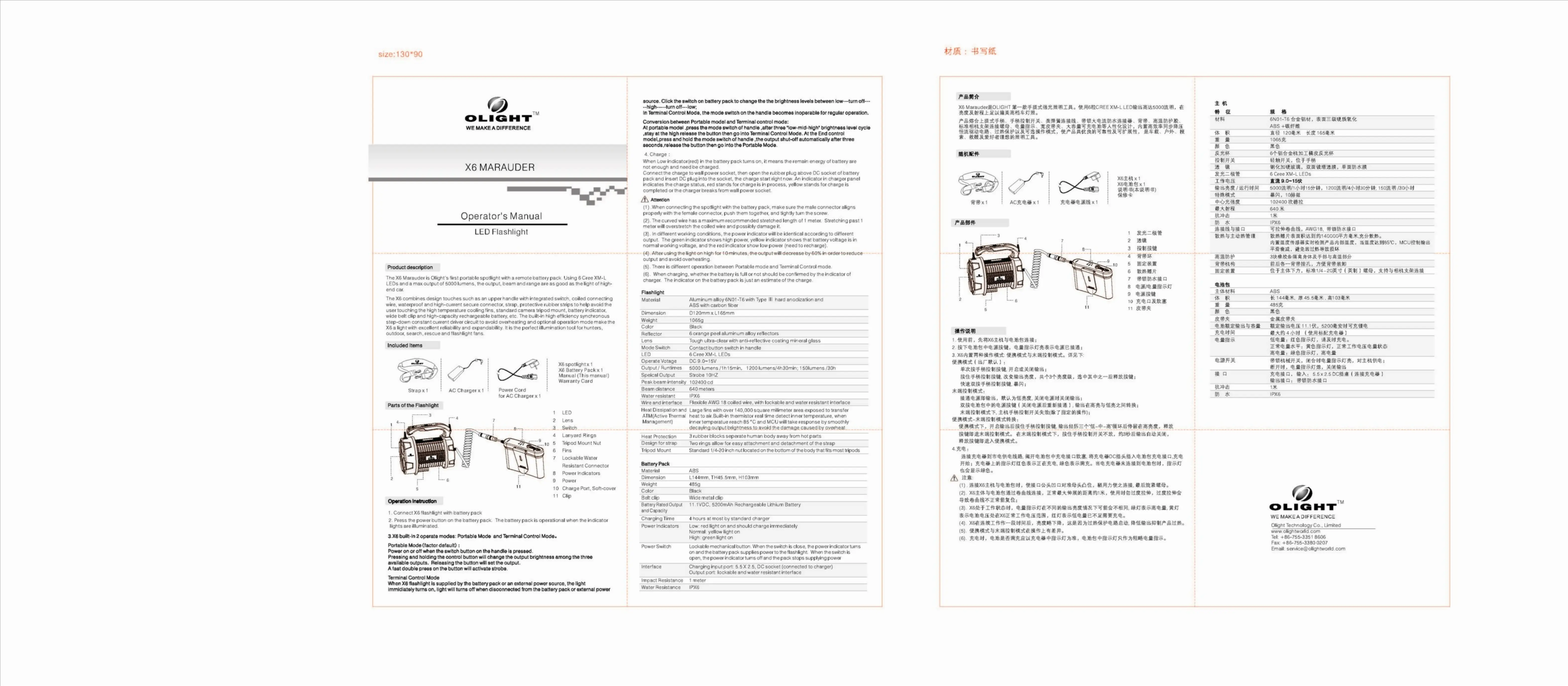 Läs gratis den bruksanvisning för Olight X6 Marauder (1 sidor) i kategorin Ficklampor. Guiden har ansetts hjälpsam av 27 personer och har ett genomsnittsbetyg på 4.5 stjärnor baserat på 14 recensioner. Har du en fråga om Olight X6 Marauder eller vill du ställa frågor till andra användare av produkten? Ställ en fråga