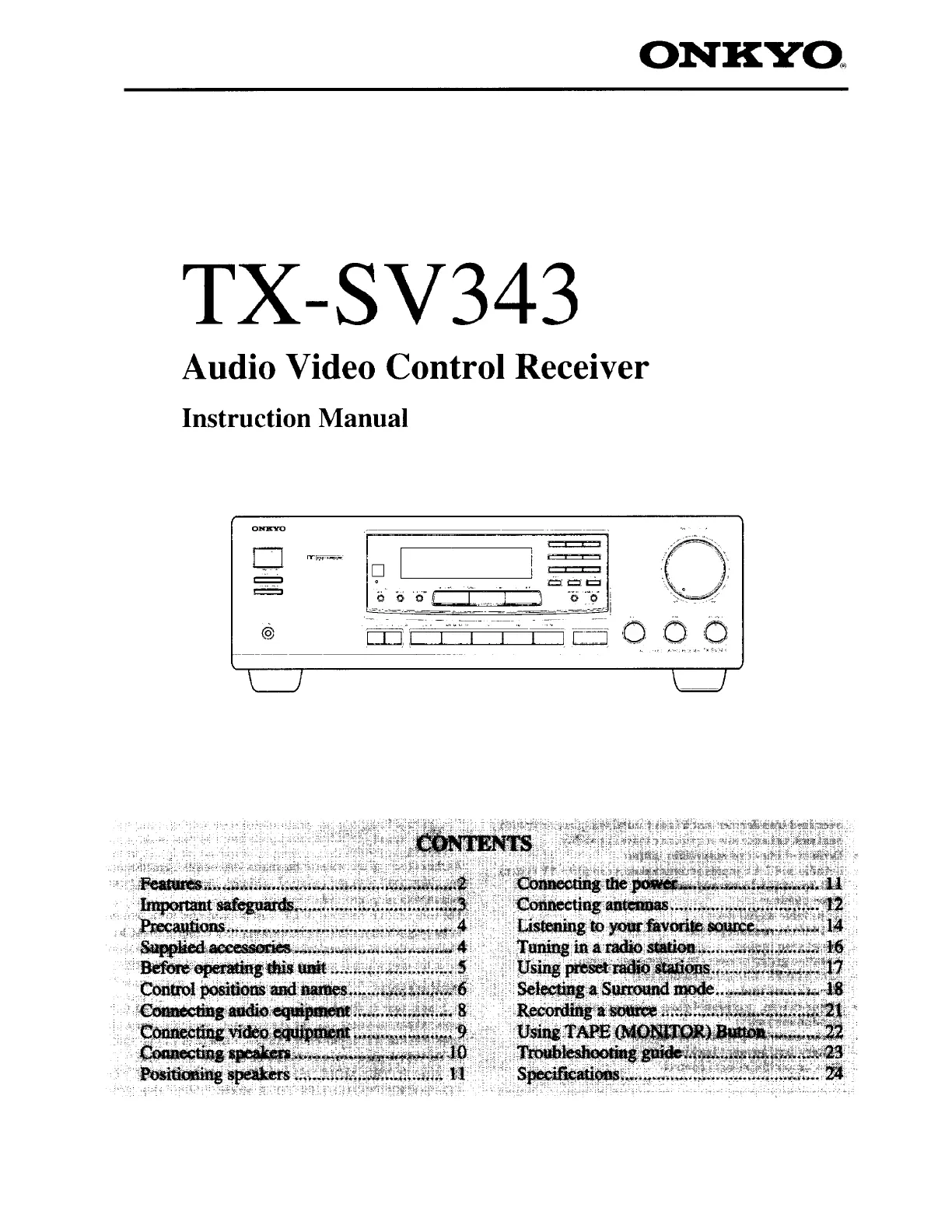 Läs gratis den bruksanvisning för Onkyo TX-SV343 (24 sidor) i kategorin mottagare. Guiden har ansetts hjälpsam av 8 personer och har ett genomsnittsbetyg på 4.7 stjärnor baserat på 4.5 recensioner. Har du en fråga om Onkyo TX-SV343 eller vill du ställa frågor till andra användare av produkten? Ställ en fråga