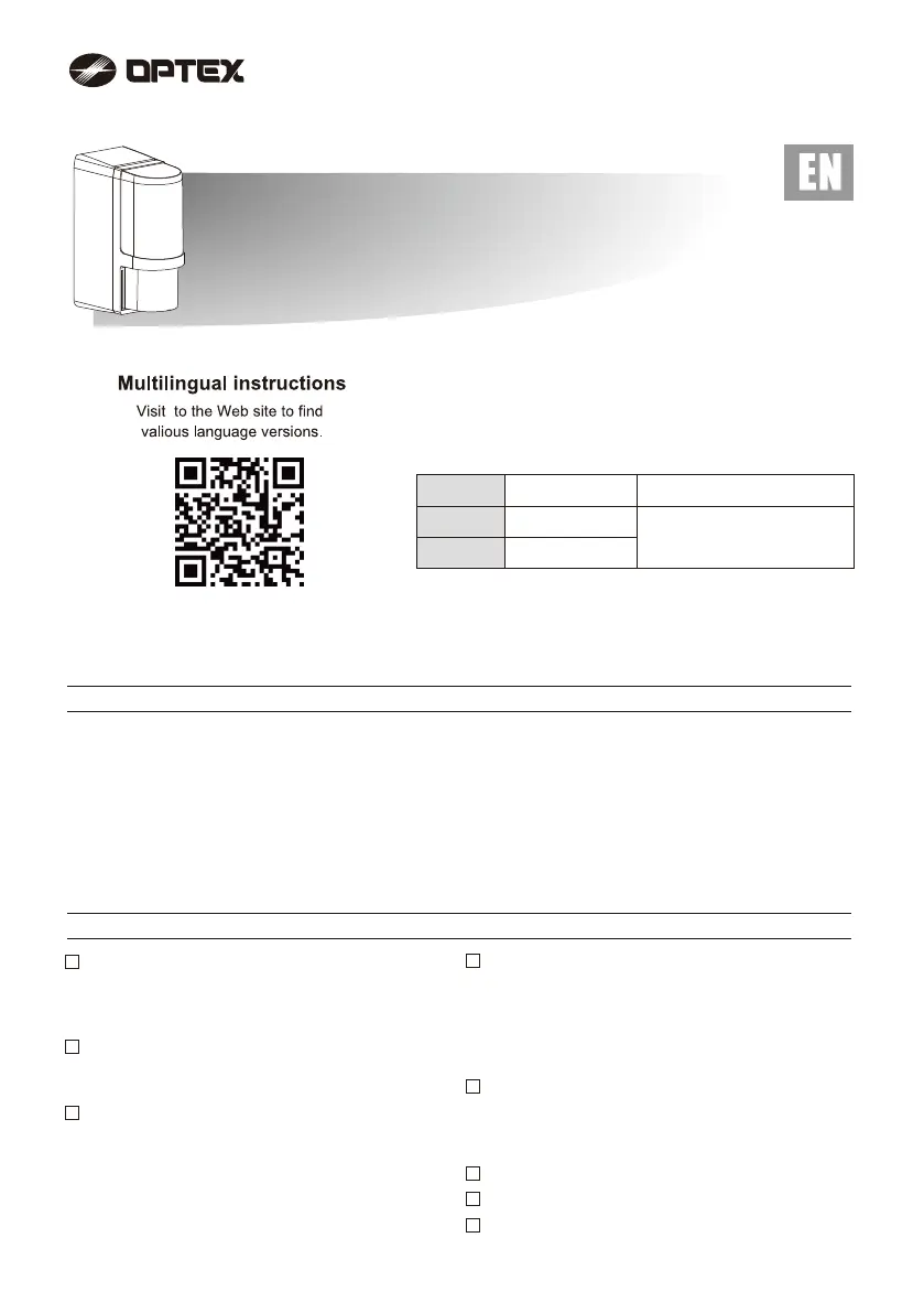 Läs gratis den bruksanvisning för Optex AX-200TFR (12 sidor) i kategorin Detektor. Guiden har ansetts hjälpsam av 9 personer och har ett genomsnittsbetyg på 4.9 stjärnor baserat på 5 recensioner. Har du en fråga om Optex AX-200TFR eller vill du ställa frågor till andra användare av produkten? Ställ en fråga
