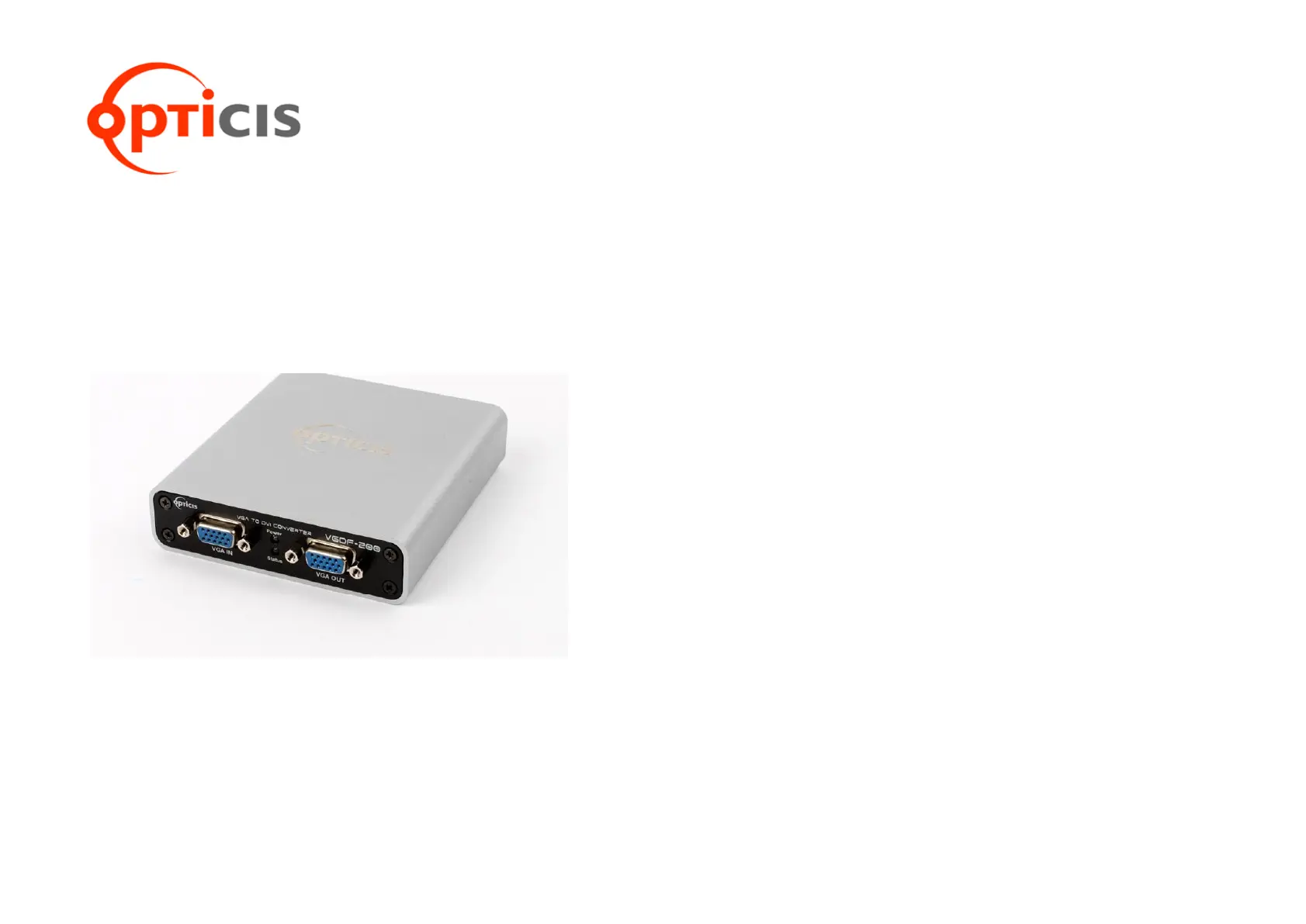 The VGDF-200, VGA to 1-fiber DVI converter receives VGA up to WUXGA
