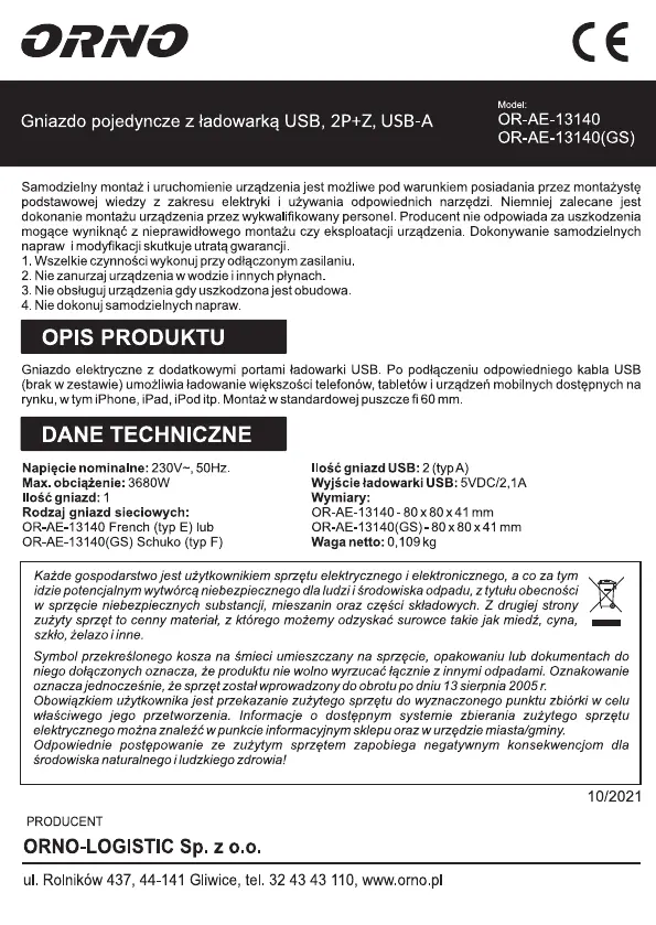 ORNO OR-AE-13140 Bruksanvisning