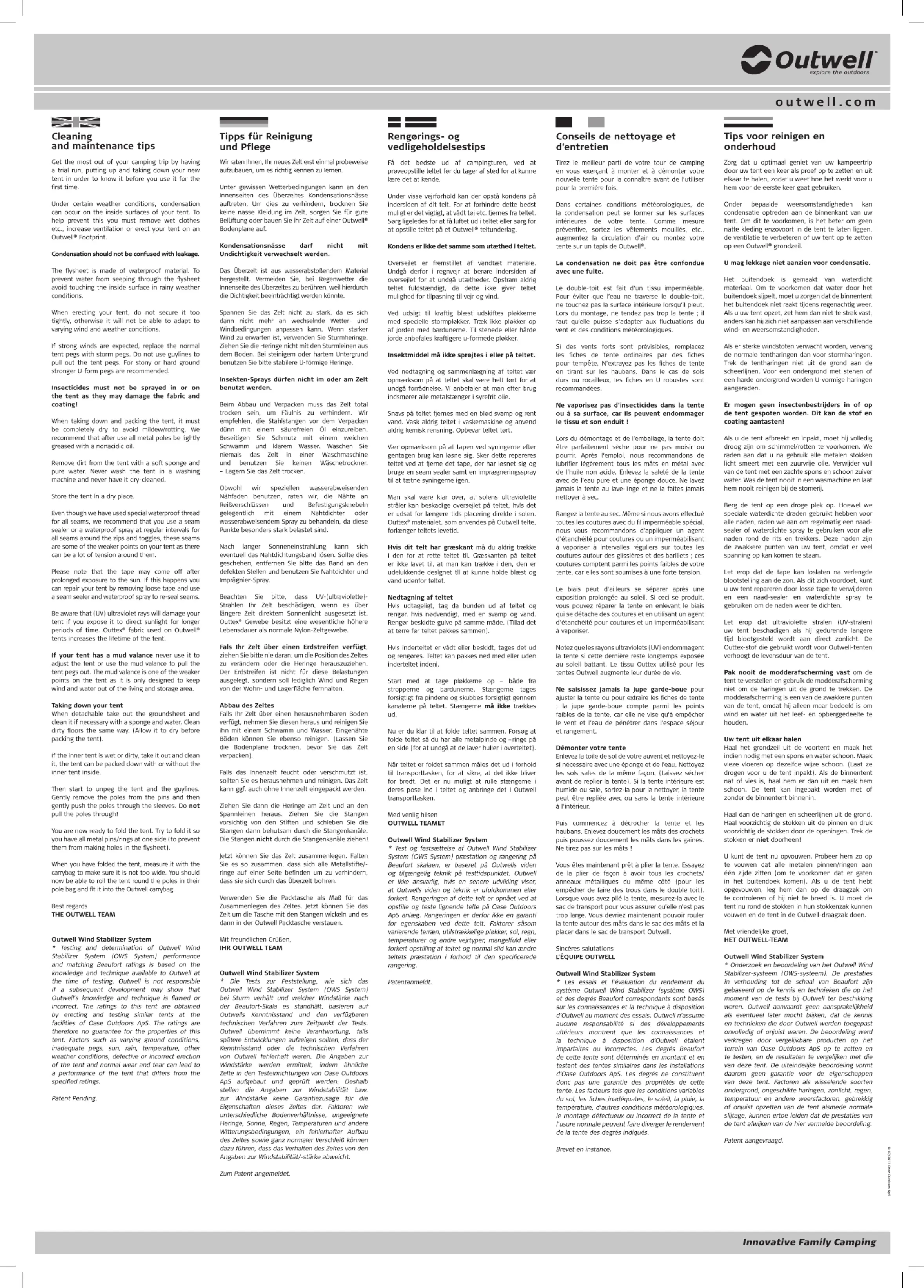 tips over onderhoud of ga naar outwell.com