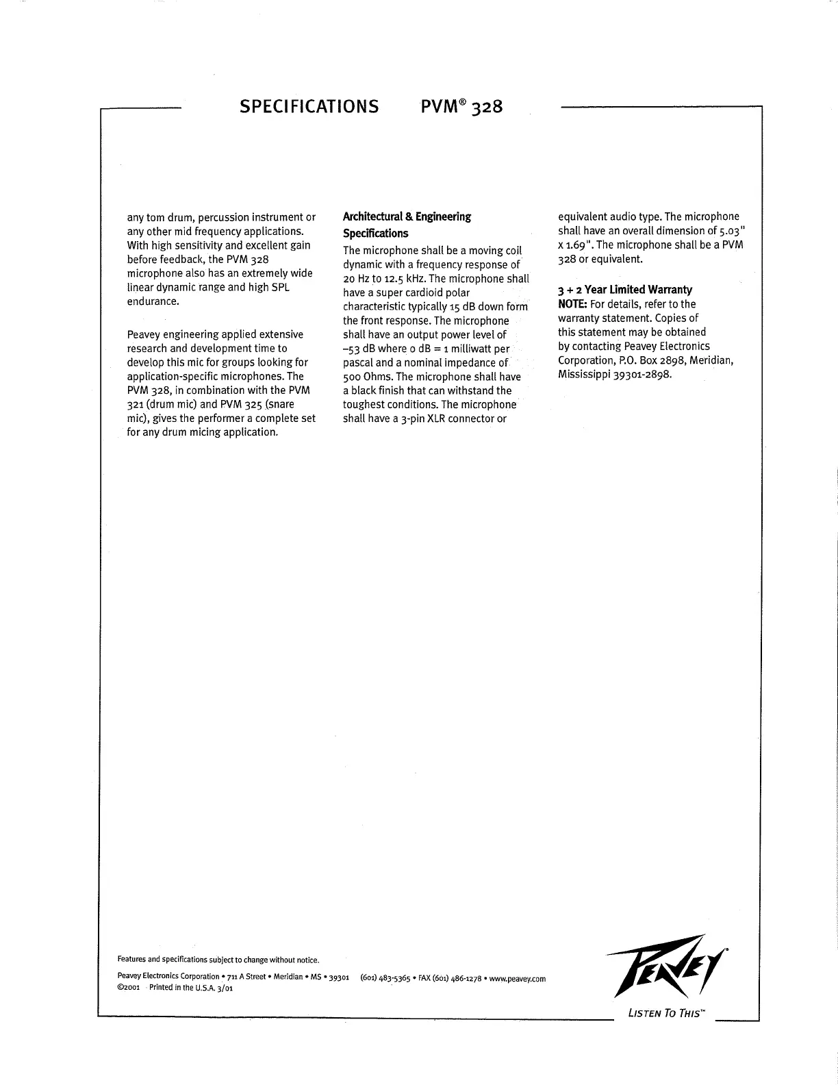 Läs gratis den bruksanvisning för Peavey PVM 328 (2 sidor) i kategorin mikrofon. Guiden har ansetts hjälpsam av 27 personer och har ett genomsnittsbetyg på 4.7 stjärnor baserat på 14 recensioner. Har du en fråga om Peavey PVM 328 eller vill du ställa frågor till andra användare av produkten? Ställ en fråga