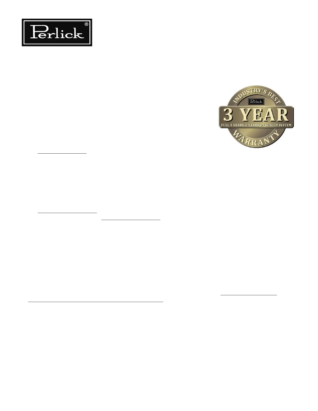 The Extended Warranty Period applies only to the hermetically sealed refrigeration system contained in Perlick’s