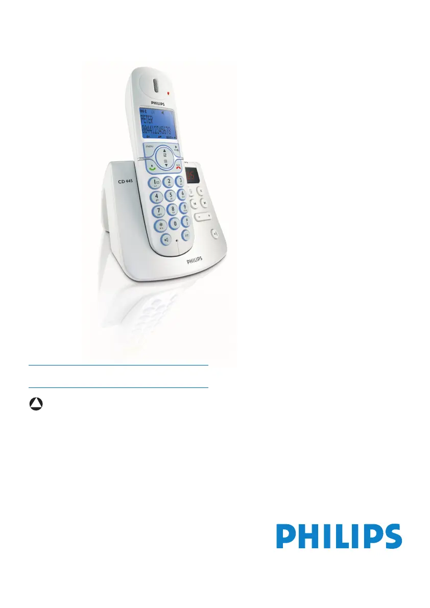 Läs gratis den bruksanvisning för Philips CD445 (47 sidor) i kategorin Telefon. Guiden har ansetts hjälpsam av 19 personer och har ett genomsnittsbetyg på 4.9 stjärnor baserat på 6 recensioner. Har du en fråga om Philips CD445 eller vill du ställa frågor till andra användare av produkten? Ställ en fråga