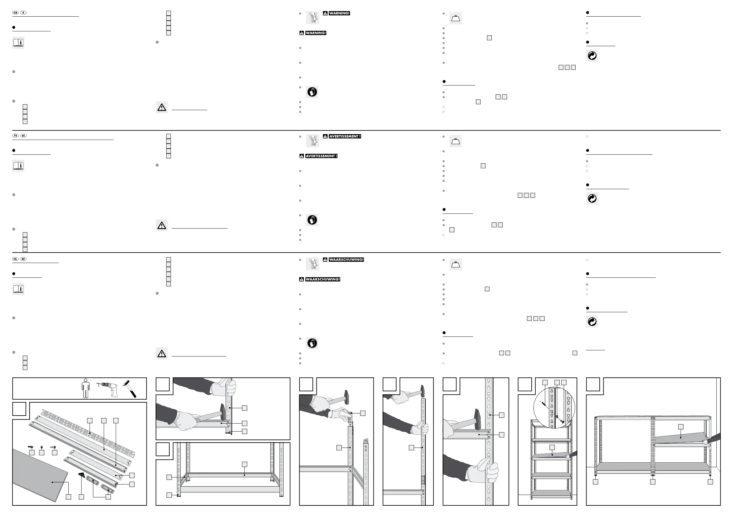 Assemble the heavy duty shelving (vertical arrangement) in accordance with Figs. A – G.