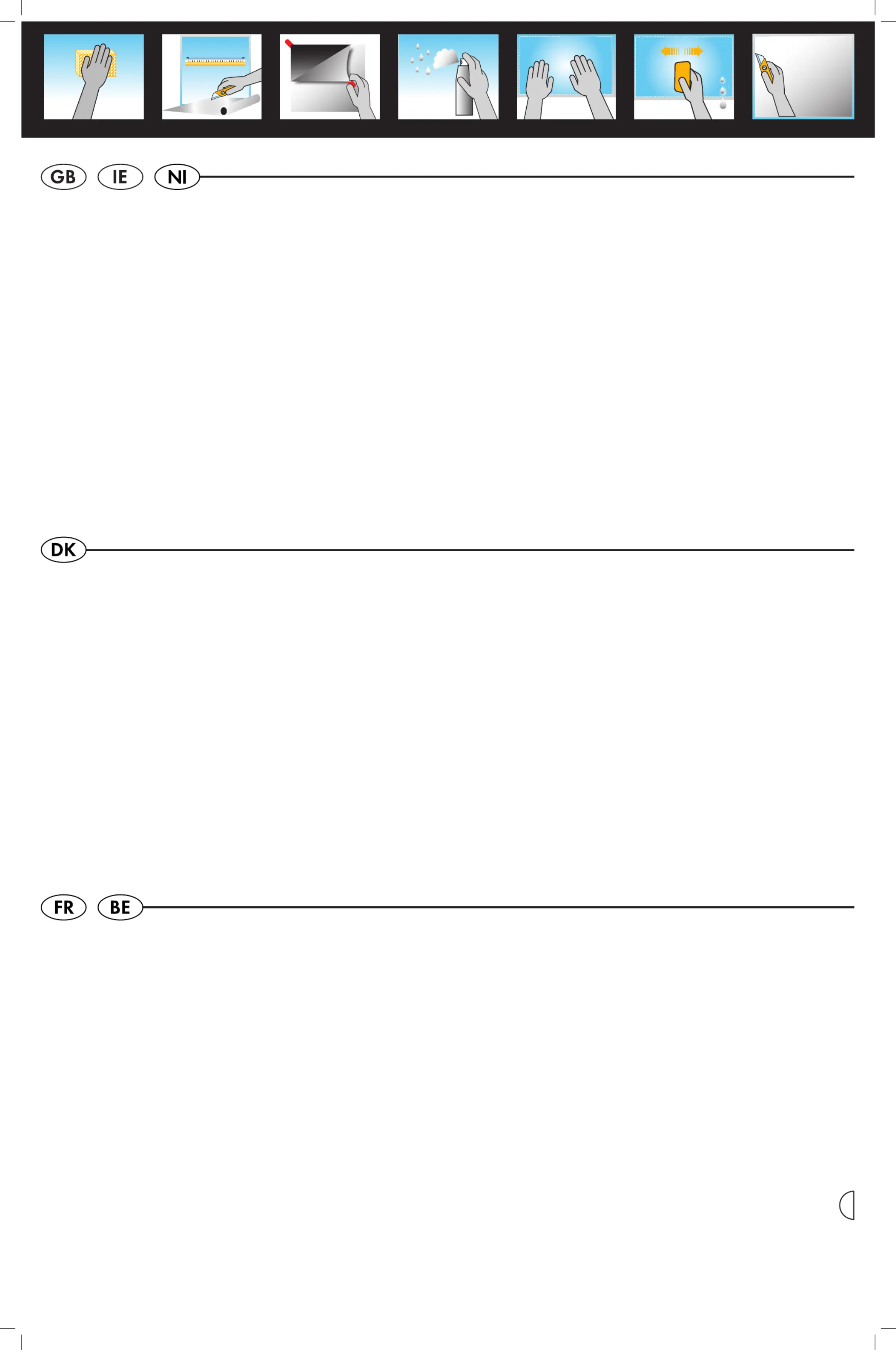 BEMÆRK: Fjern kun filmen når glasoverfladen er kold. Filmen er termoelastisk, og opvarmet glas kan ændre egenskaberne.