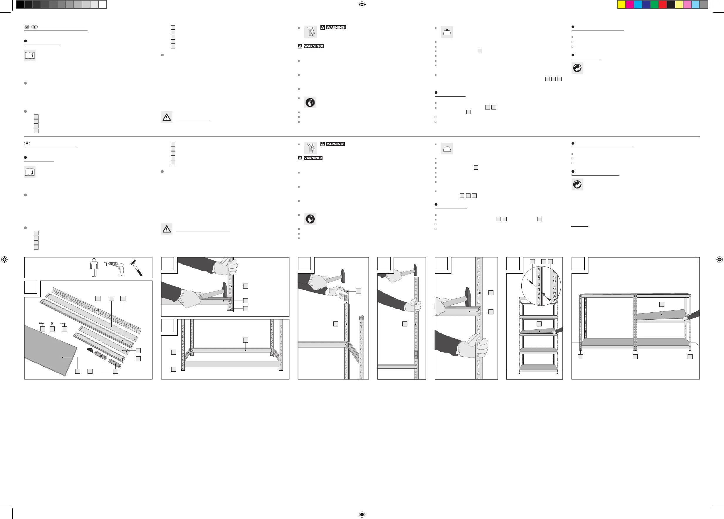 Assemble the heavy duty shelving (vertical arrangement) in accordance with Figs. A – G.