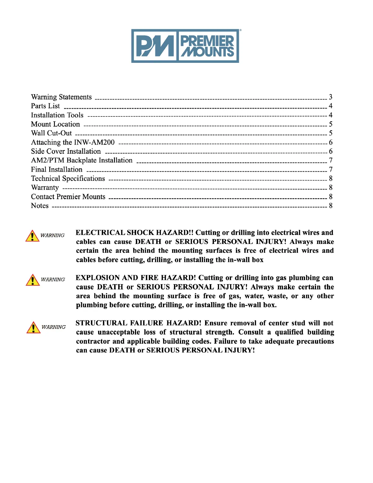 ej kategoriserat Premier Mounts Manualer