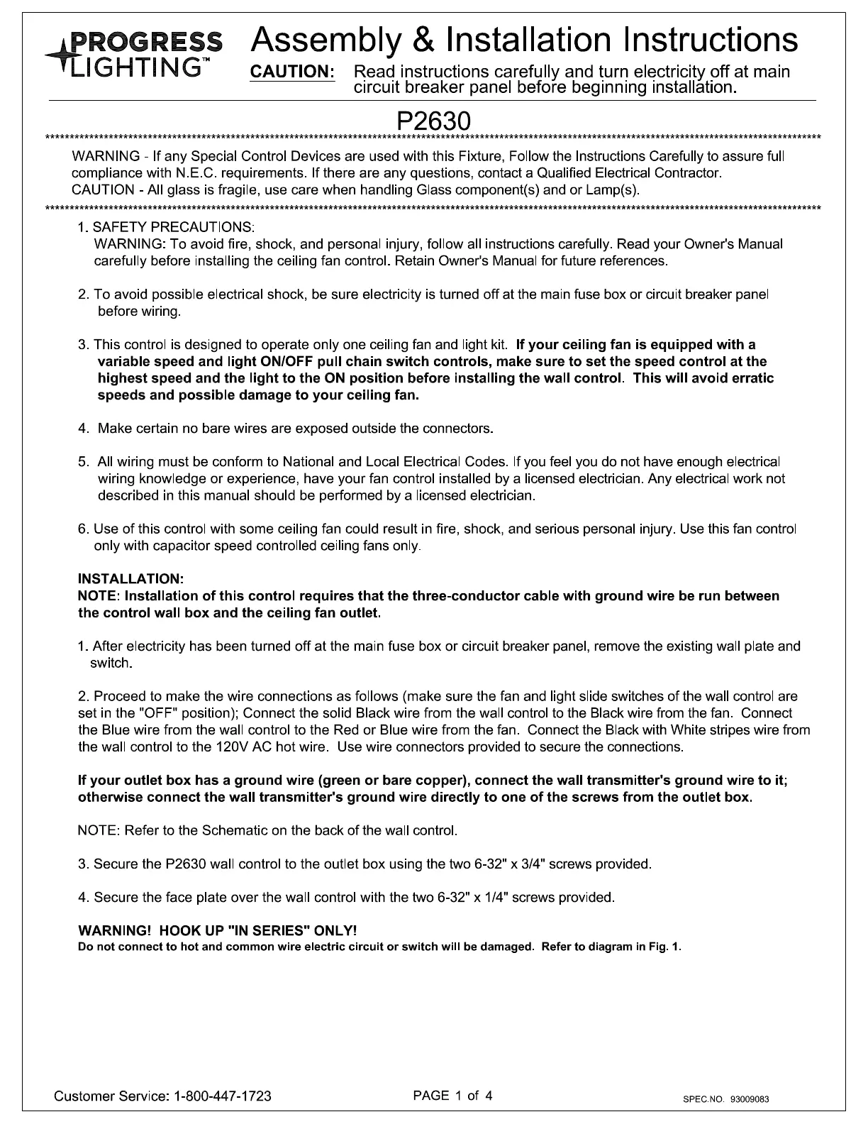 Progress Lighting P2630 Bruksanvisning