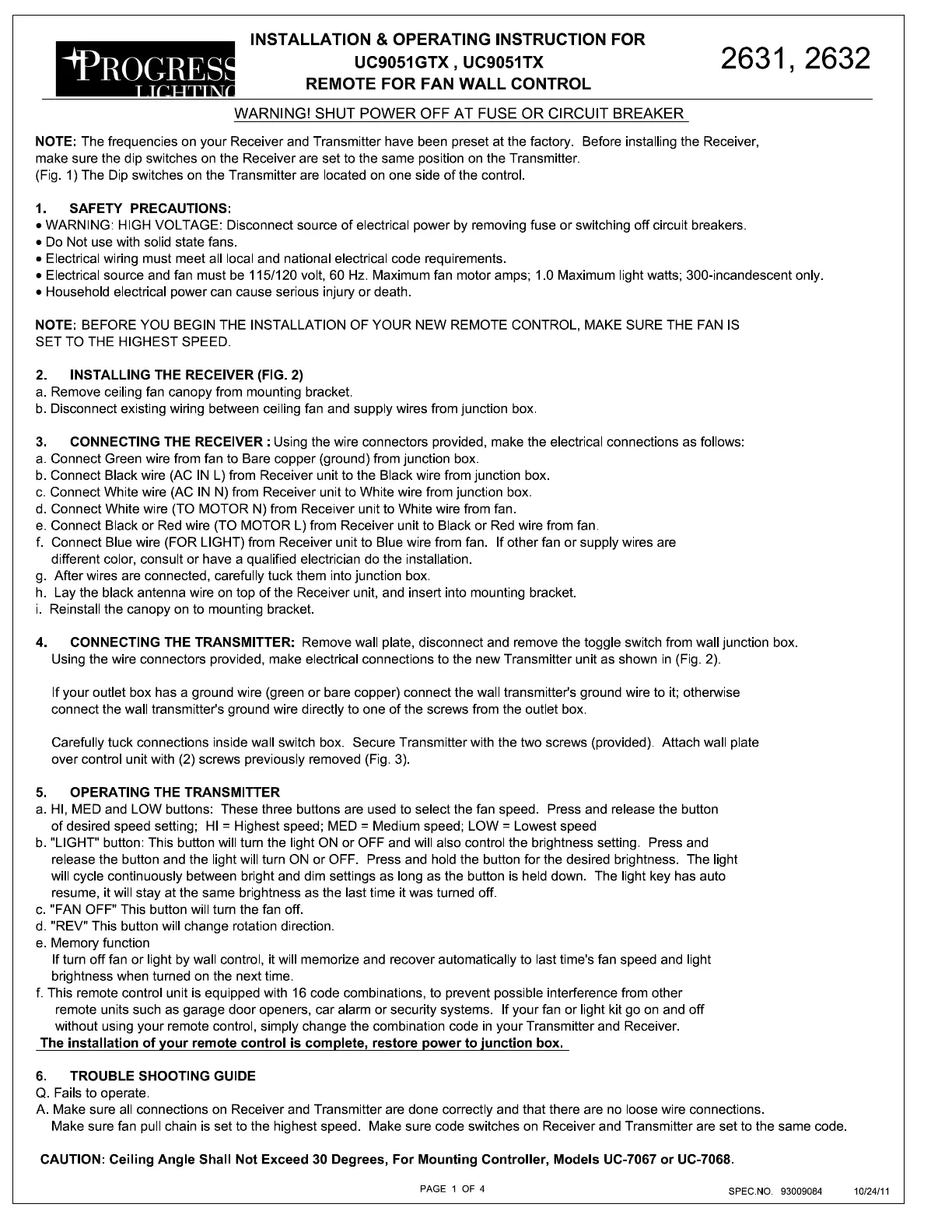 Progress Lighting P2631 Bruksanvisning