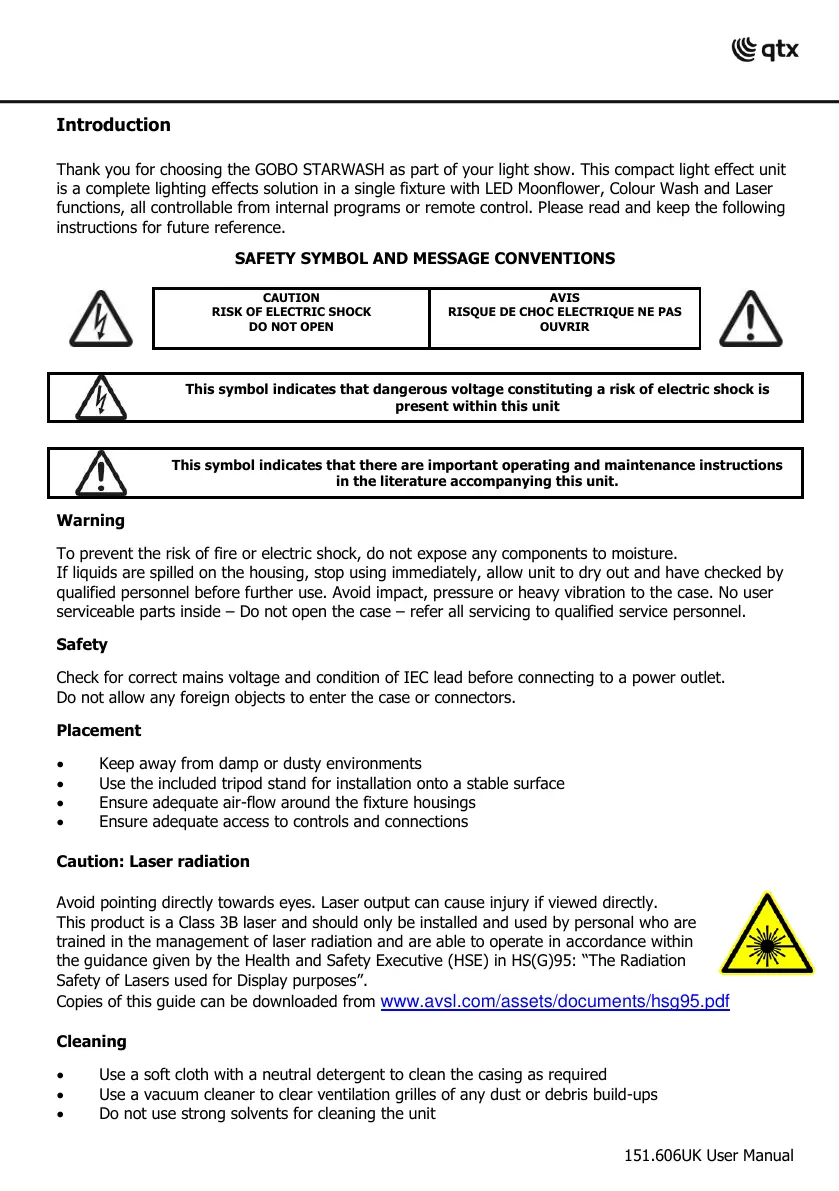 Thank you for choosing the GOBO STARWASH as part of your light show. This compact light effect unit