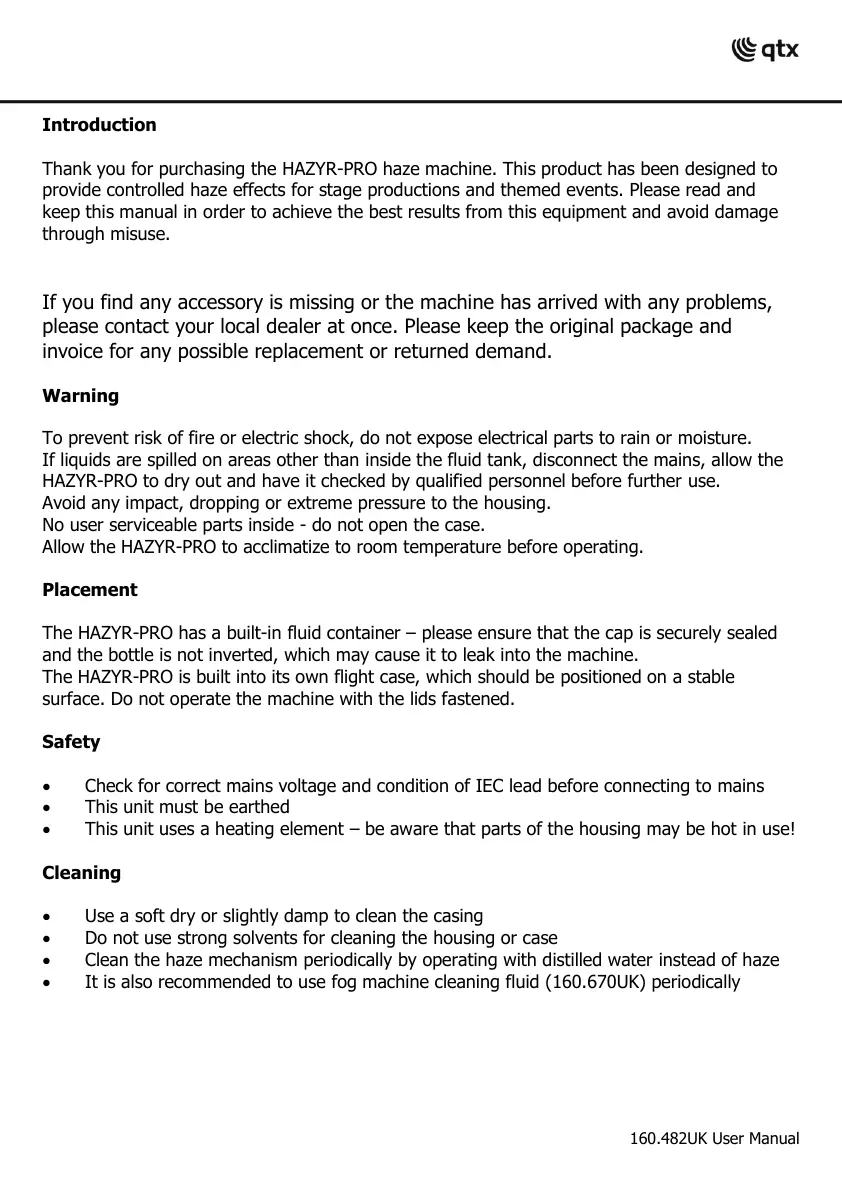 Thank you for purchasing the HAZYR-PRO haze machine. This product has been designed to