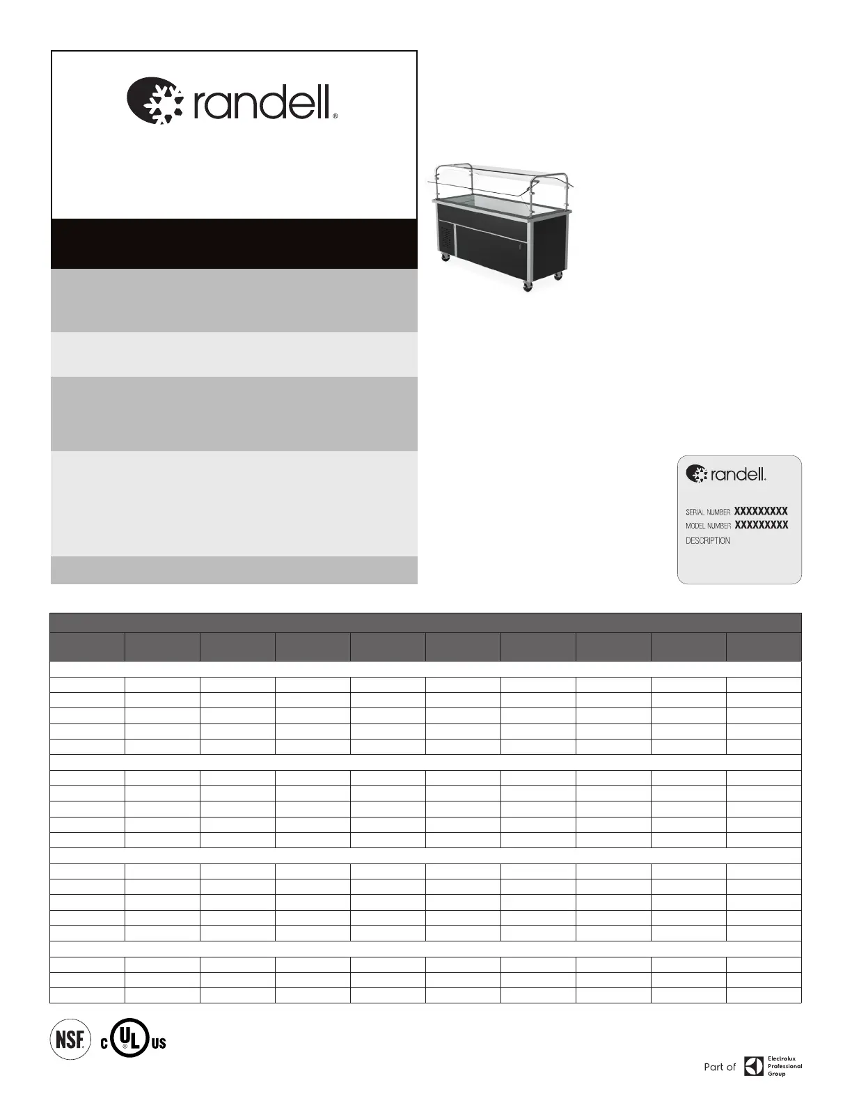serial number tag on Randell hot food and silverware