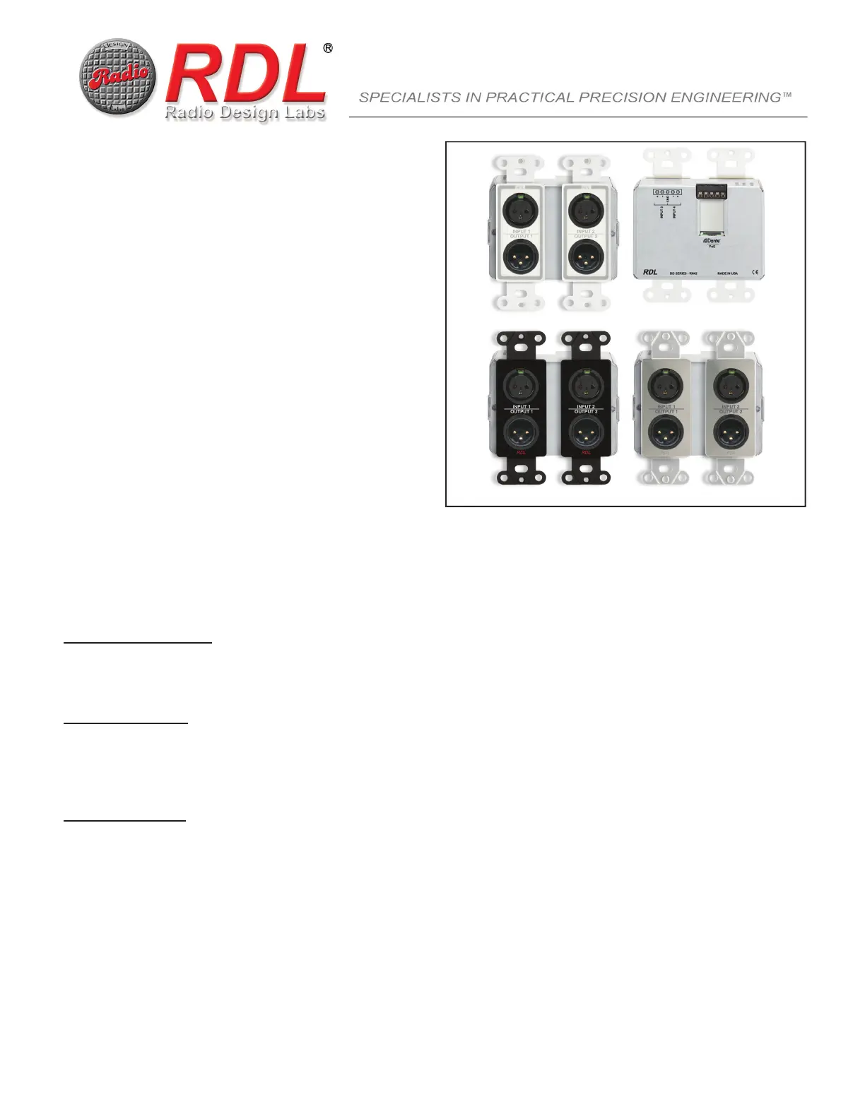 through XLR jacks housed in a steel chassis with dual powder-coated or stainless steel Decora front plates.