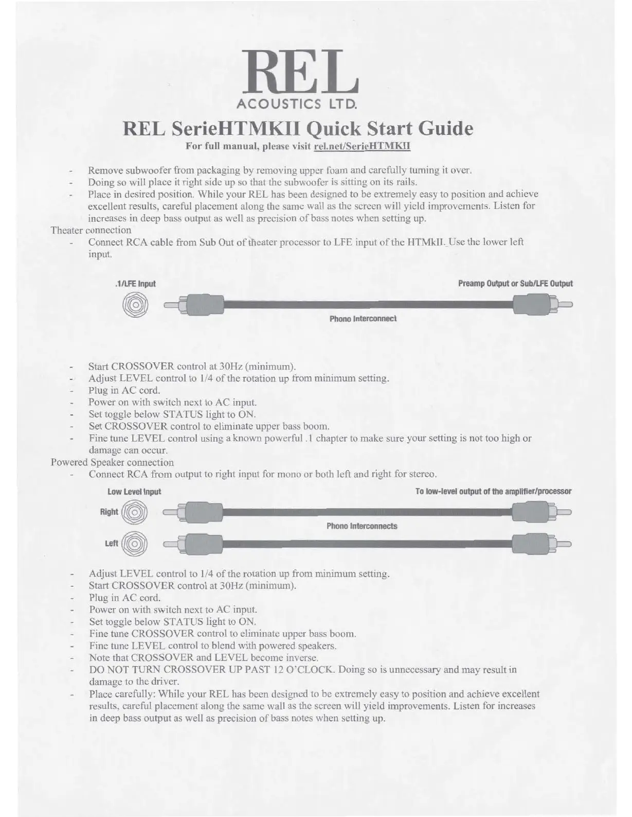 REL SerieHTMKII Quick Start Guide
