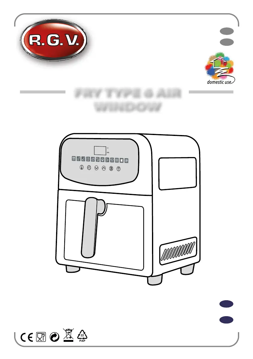 Läs gratis den bruksanvisning för RGV Fry Type 6 Air Window (22 sidor) i kategorin Fritös. Guiden har ansetts hjälpsam av 21 personer och har ett genomsnittsbetyg på 4.0 stjärnor baserat på 11 recensioner. Har du en fråga om RGV Fry Type 6 Air Window eller vill du ställa frågor till andra användare av produkten? Ställ en fråga