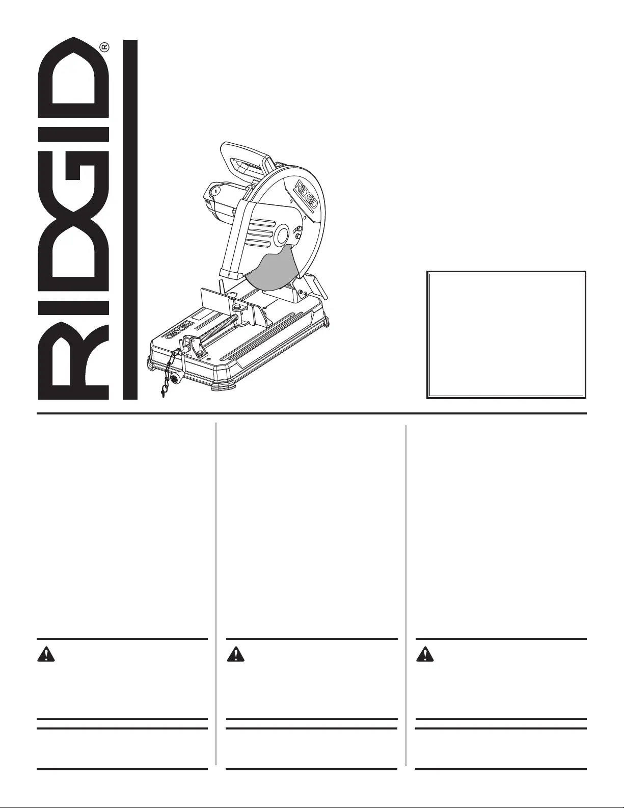 Läs gratis den bruksanvisning för RIDGID R41422 (48 sidor) i kategorin Sågmaskin. Guiden har ansetts hjälpsam av 19 personer och har ett genomsnittsbetyg på 4.0 stjärnor baserat på 10 recensioner. Har du en fråga om RIDGID R41422 eller vill du ställa frågor till andra användare av produkten? Ställ en fråga