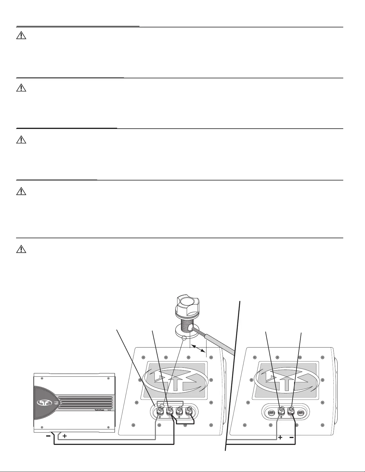(wiring harnesses).The positive (+) speaker output from the amp connects to the red terminal of the enclosure, and the negative (-) connects to the