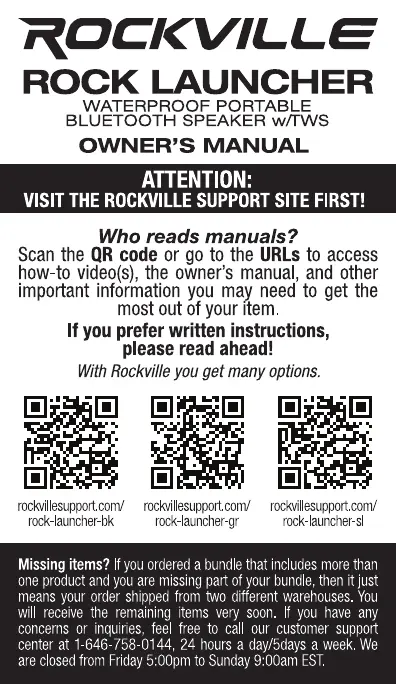 Rockville ROCK LAUNCHER Bruksanvisning