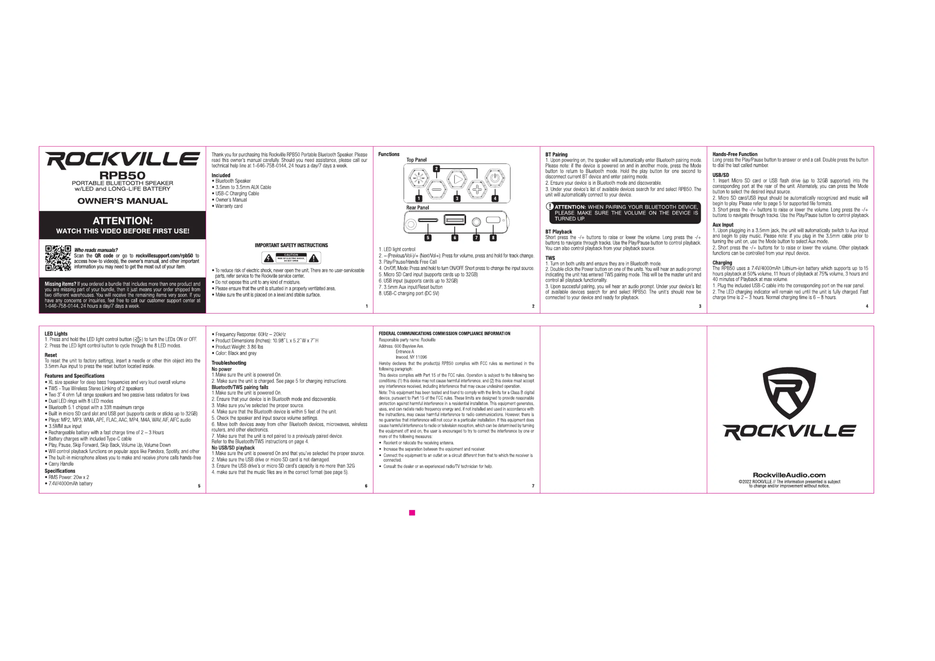Rockville RPB50 Bruksanvisning