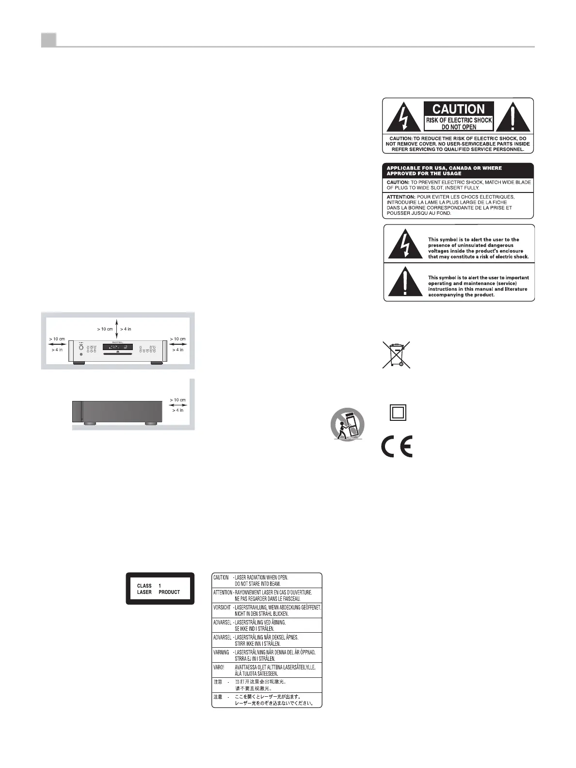 or shelf system recommended by Rotel. Use