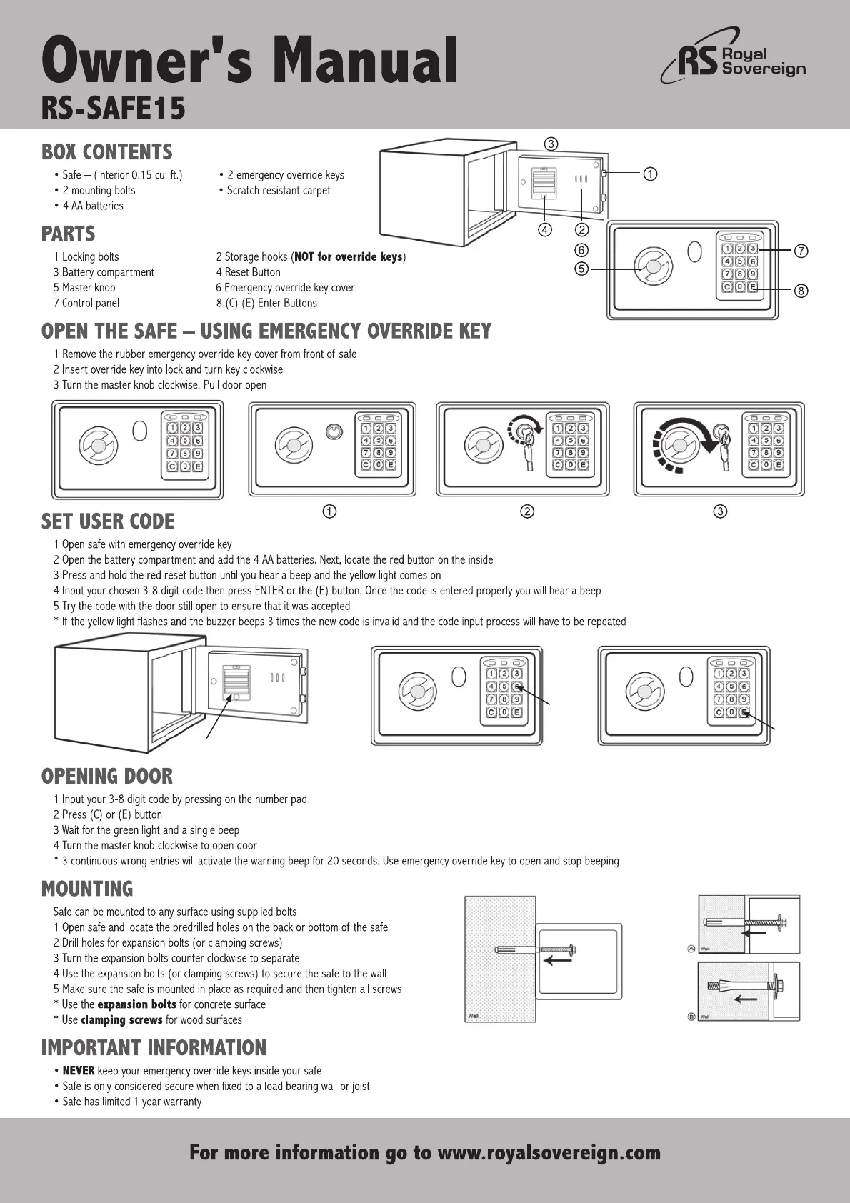 Royal Sovereign RS-SAFE15 Bruksanvisning