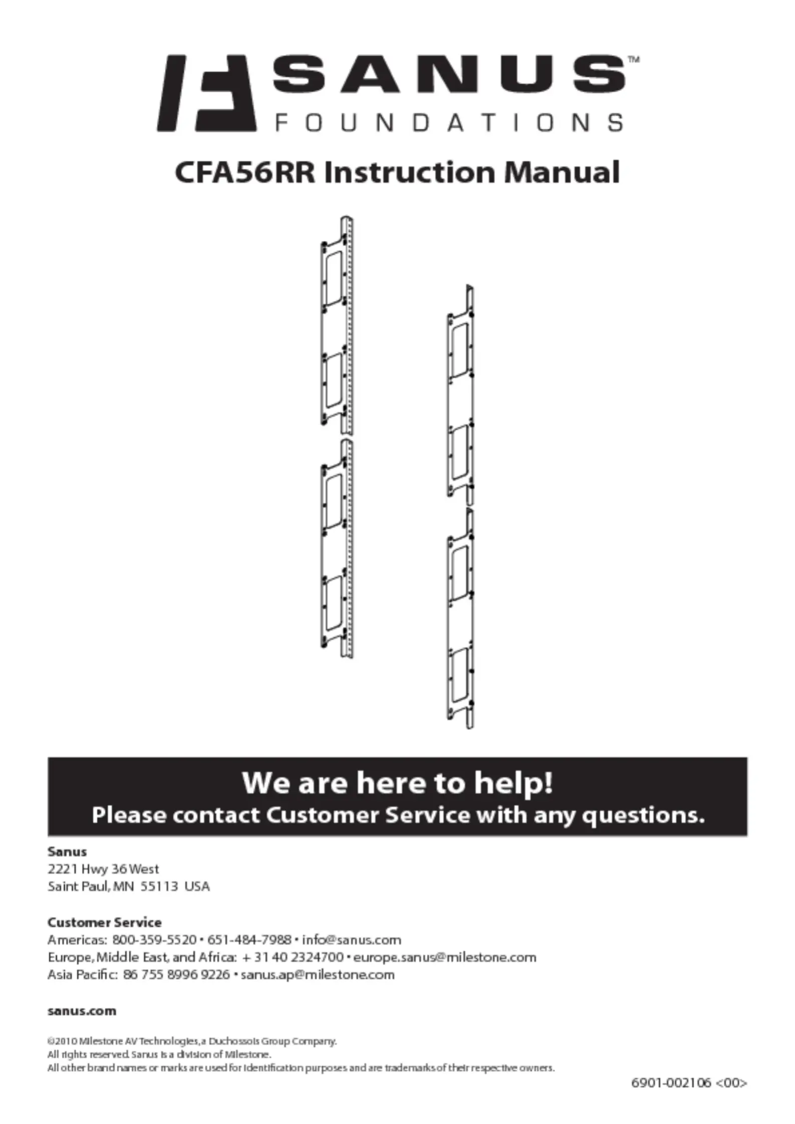 Läs gratis den bruksanvisning för Sanus CFA56RR (6 sidor) i kategorin TV-skåp. Guiden har ansetts hjälpsam av 19 personer och har ett genomsnittsbetyg på 4.4 stjärnor baserat på 10 recensioner. Har du en fråga om Sanus CFA56RR eller vill du ställa frågor till andra användare av produkten? Ställ en fråga