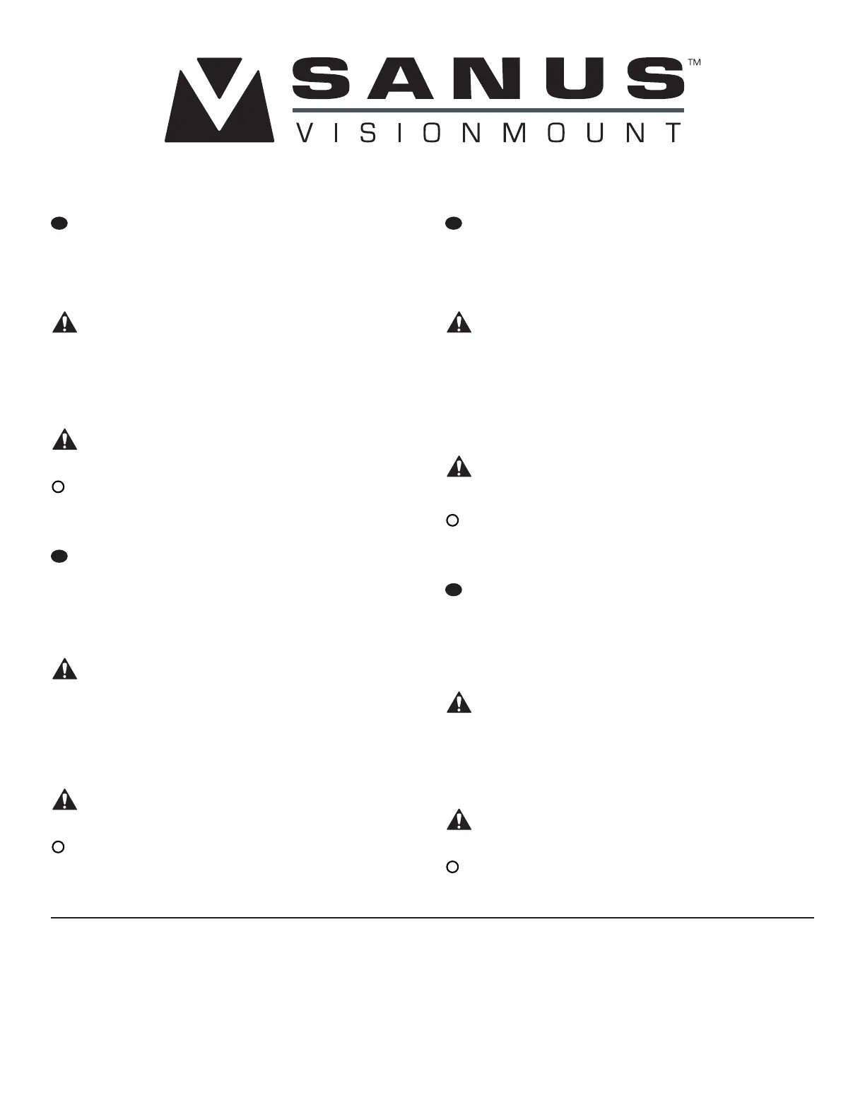 not explicitly speci ed by Sanus Systems. Improper installation may cause
