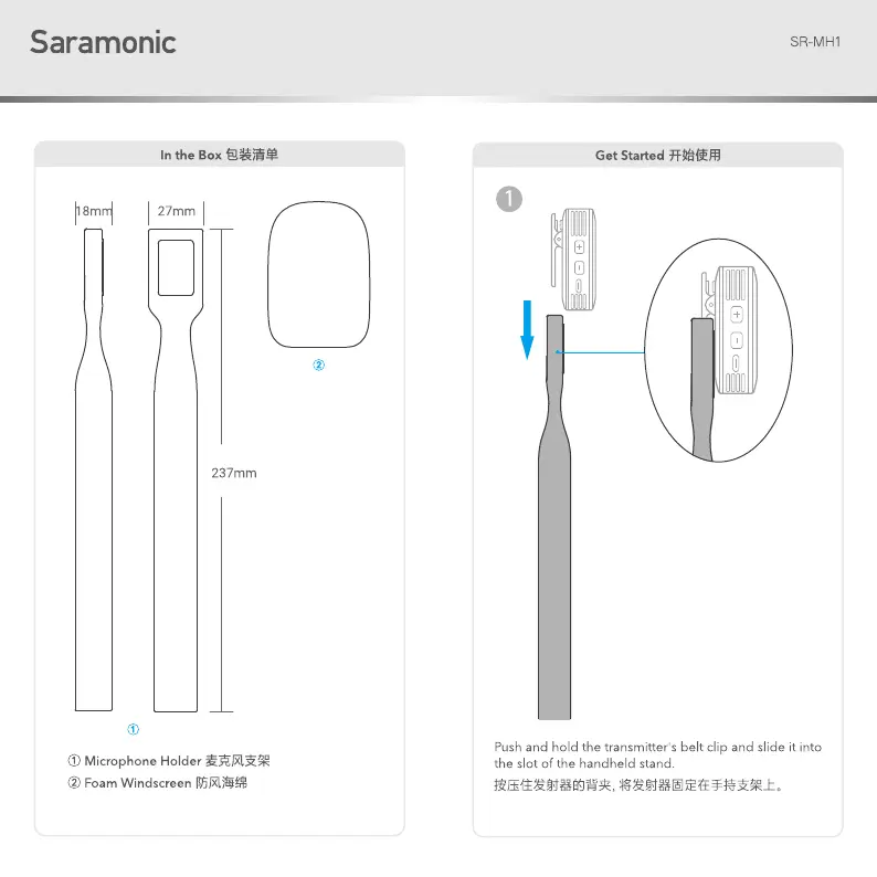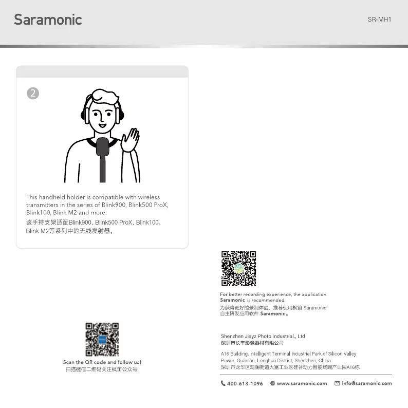 Läs gratis den bruksanvisning för Saramonic SR-MH1 (2 sidor) i kategorin mikrofon. Guiden har ansetts hjälpsam av 4 personer och har ett genomsnittsbetyg på 4.6 stjärnor baserat på 2.5 recensioner. Har du en fråga om Saramonic SR-MH1 eller vill du ställa frågor till andra användare av produkten? Ställ en fråga