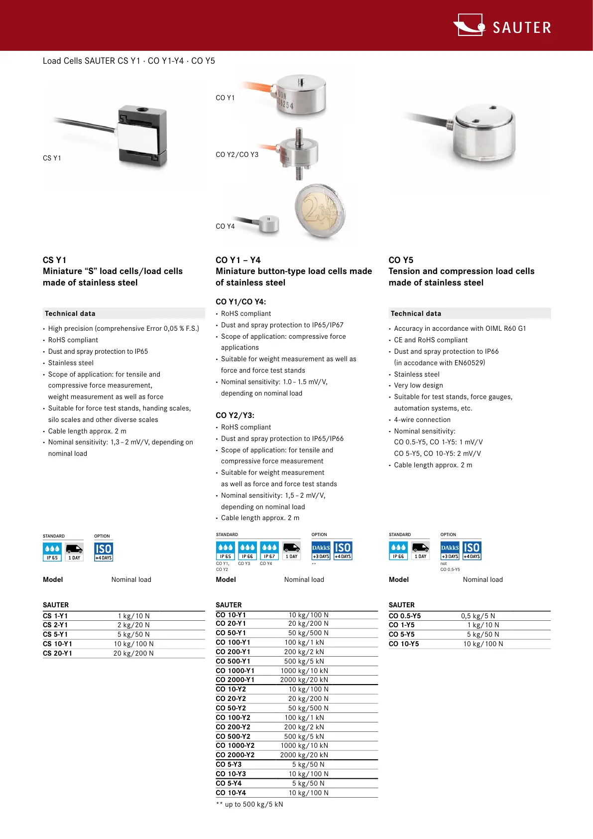 Load Cells SAUTER CS Y1 · CO Y1-Y4 · CO Y5