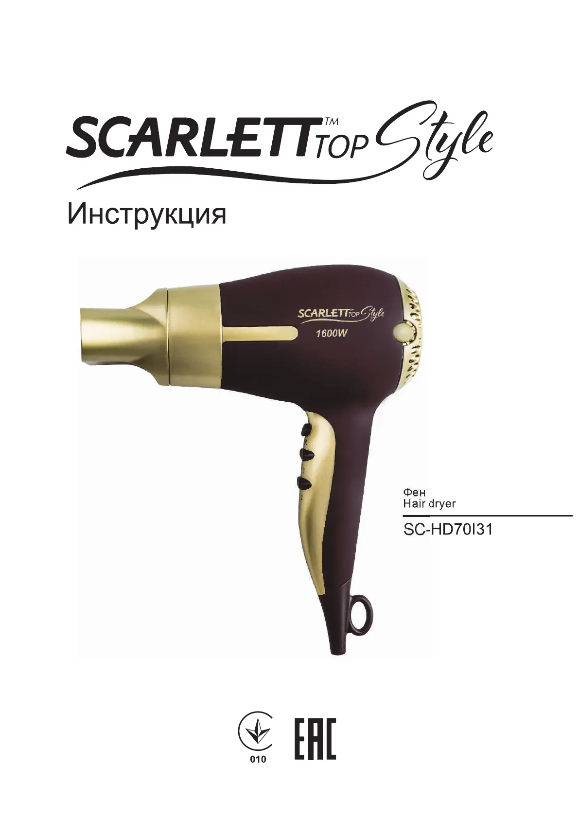 Scarlett SC-HD70I31 Bruksanvisning