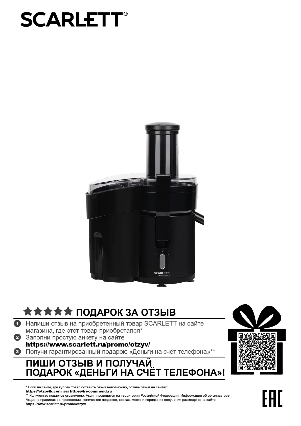 Läs gratis den bruksanvisning för Scarlett SC-JE50P02 (12 sidor) i kategorin Juicer. Guiden har ansetts hjälpsam av 15 personer och har ett genomsnittsbetyg på 4.4 stjärnor baserat på 8 recensioner. Har du en fråga om Scarlett SC-JE50P02 eller vill du ställa frågor till andra användare av produkten? Ställ en fråga