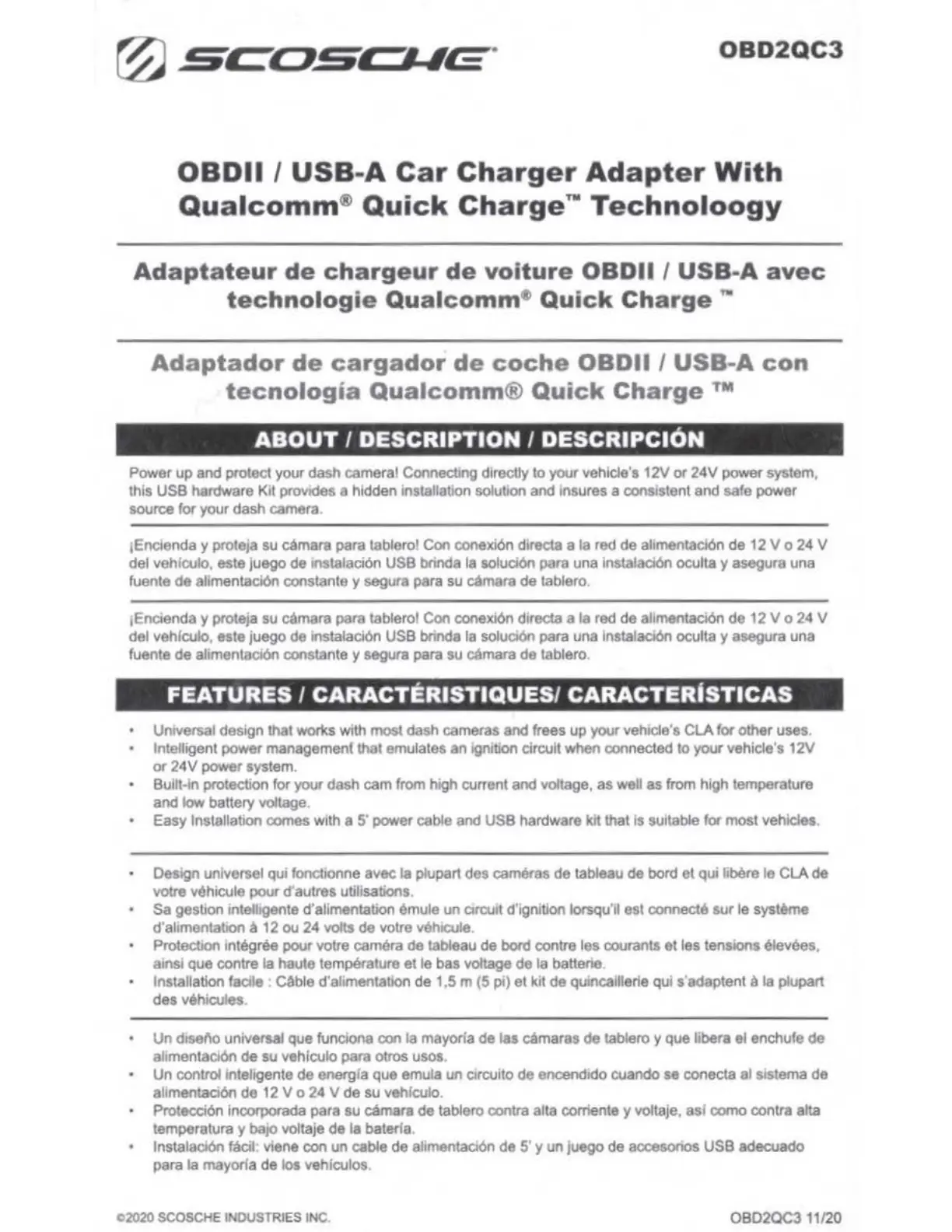 Scosche OBD2QC3 Bruksanvisning