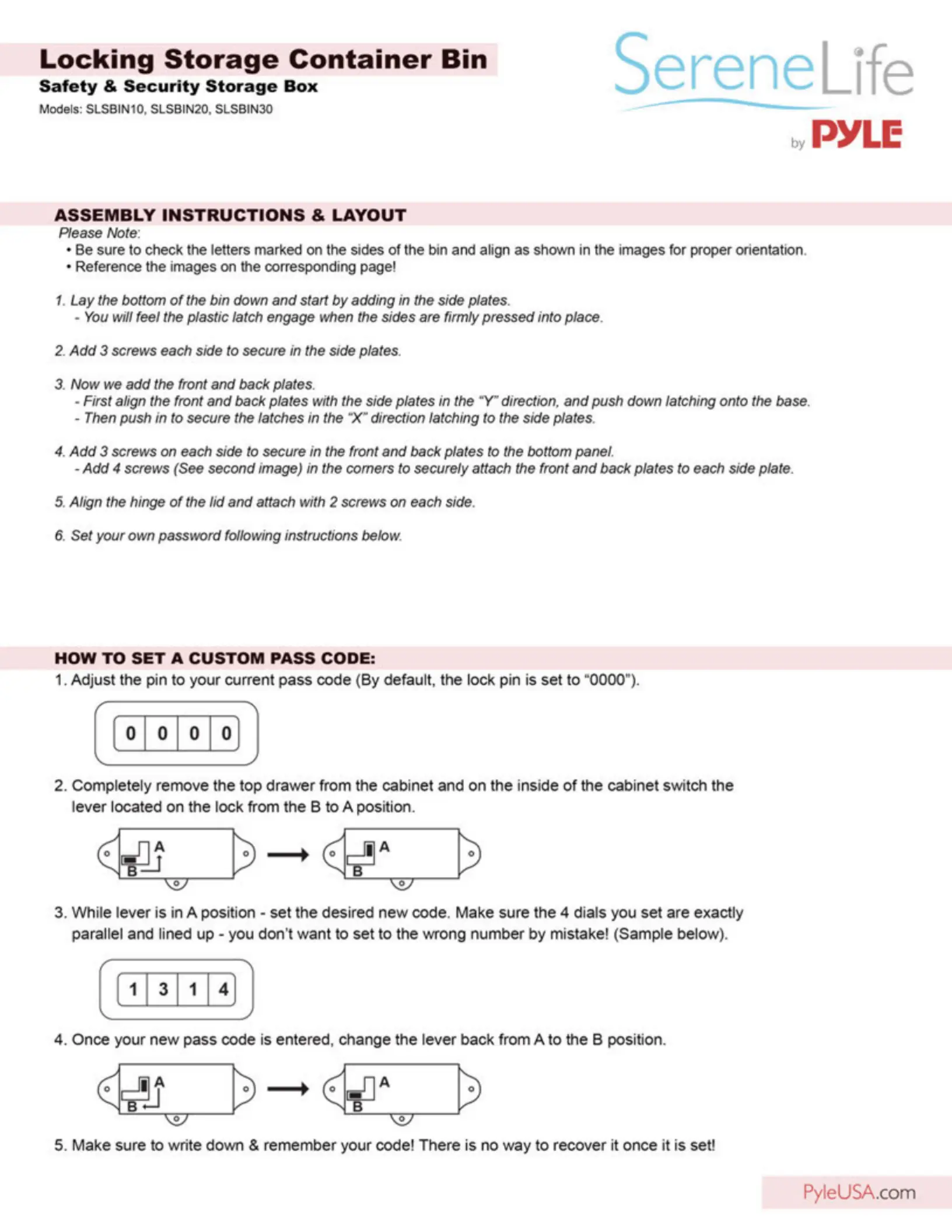 SereneLife SLSBIN20.9 Bruksanvisning